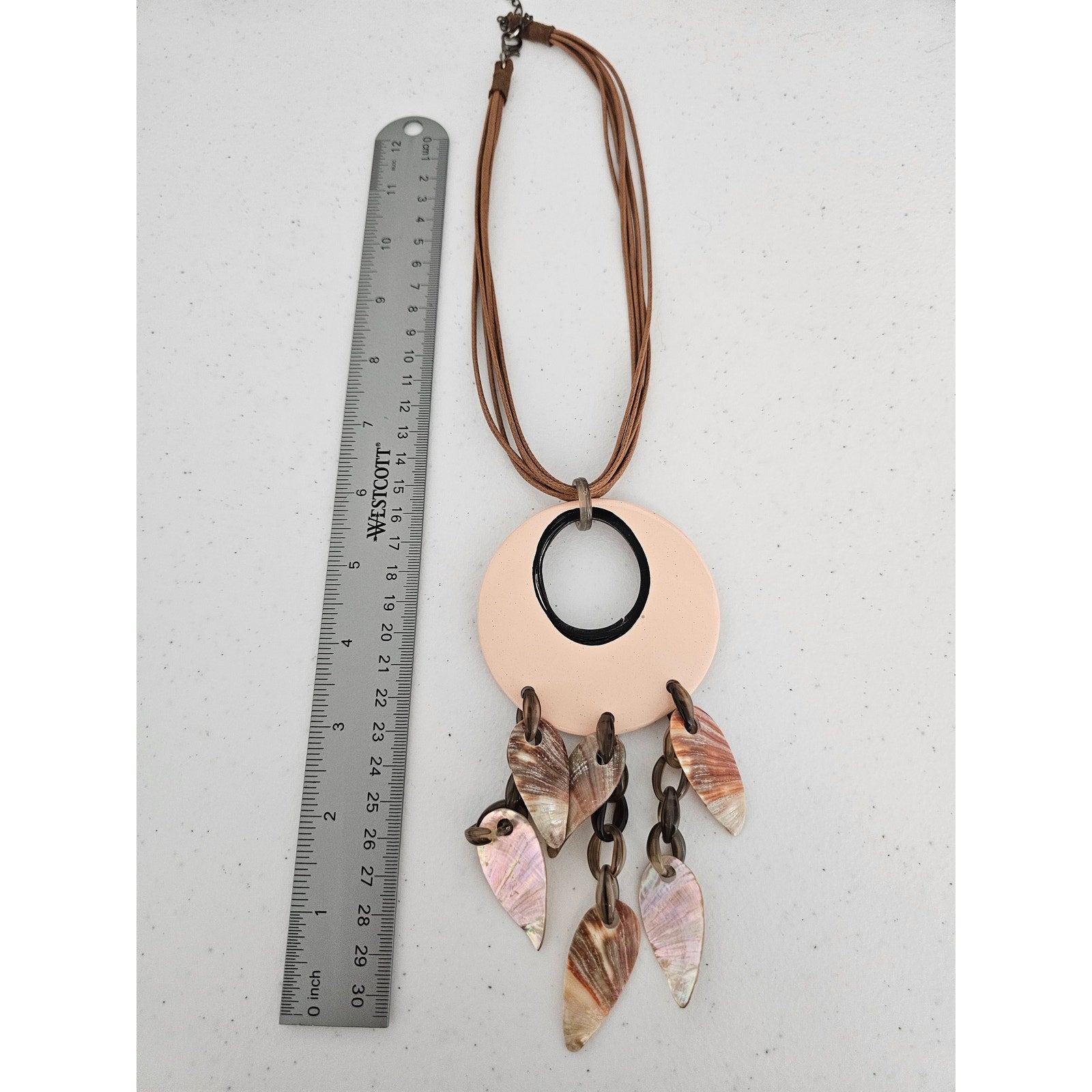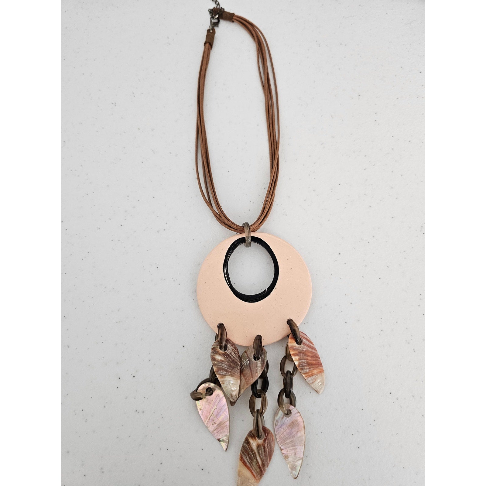 Vintage 1990s Pendant Style Necklace Mother of Pearl Large Round Accent