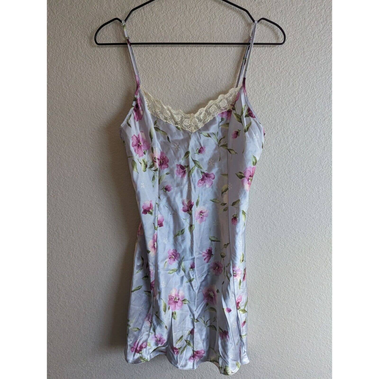 Vintage 1990s Private Luxuries Sz M Light Purple Satin Nightgown Floral