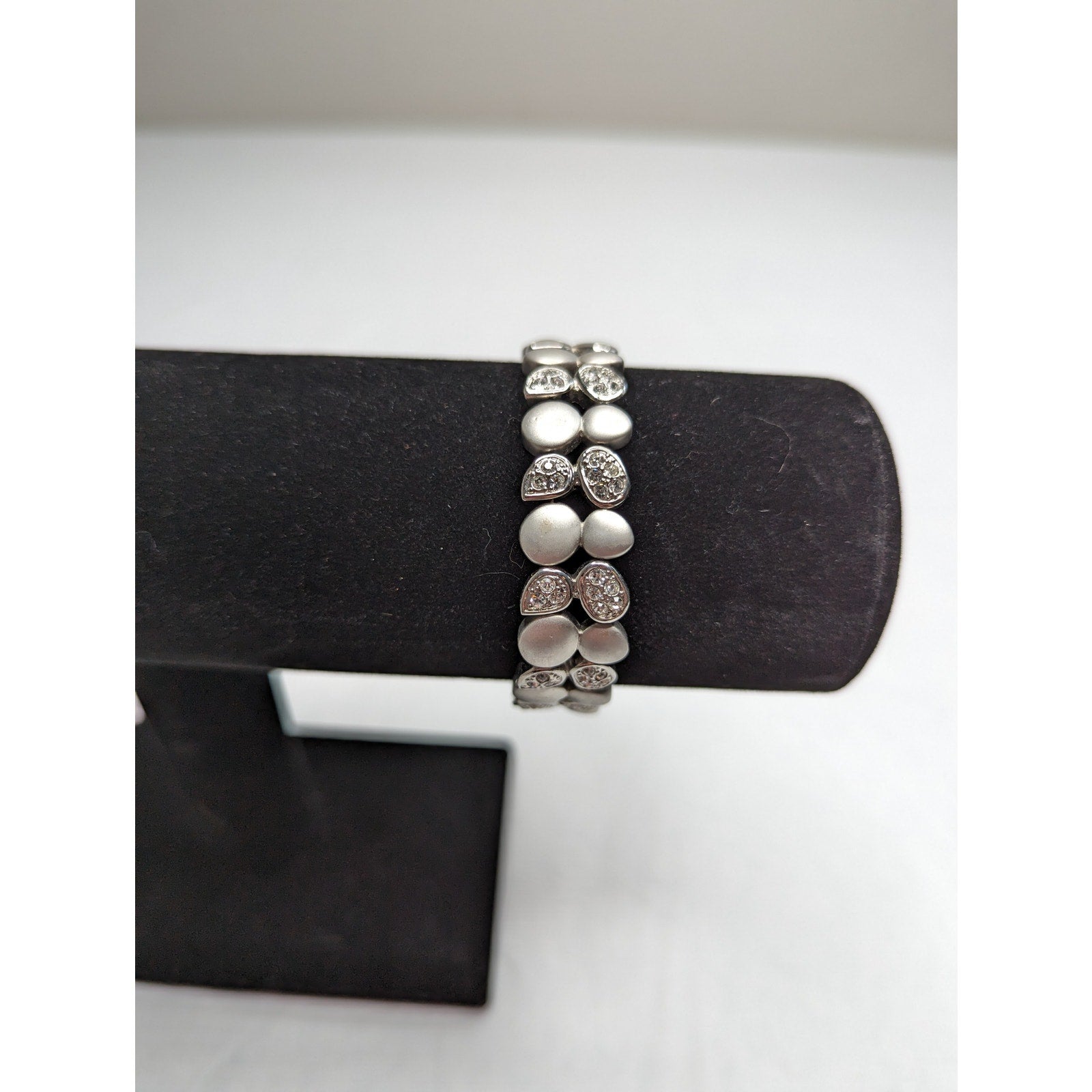Vintage 1990s Silver Tone Rhinestone Two Layer Clasp Bracelet