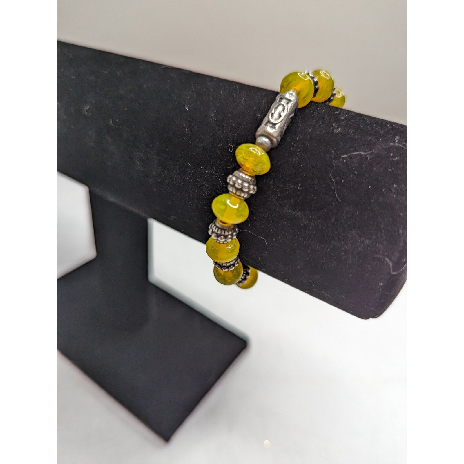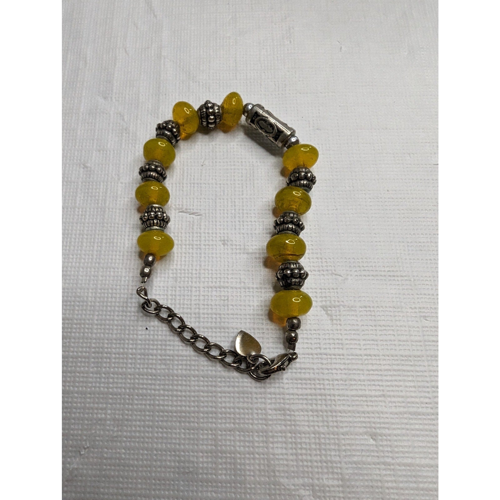Vintage 1990s Single Strand Beaded Necklace Yellow Glass Beads Silver Metal