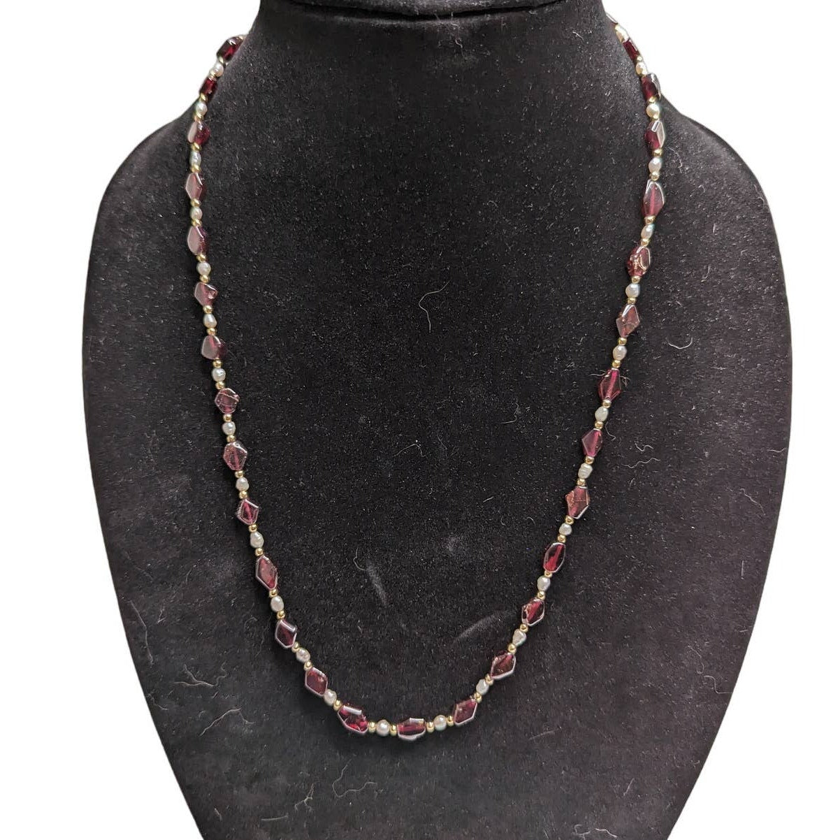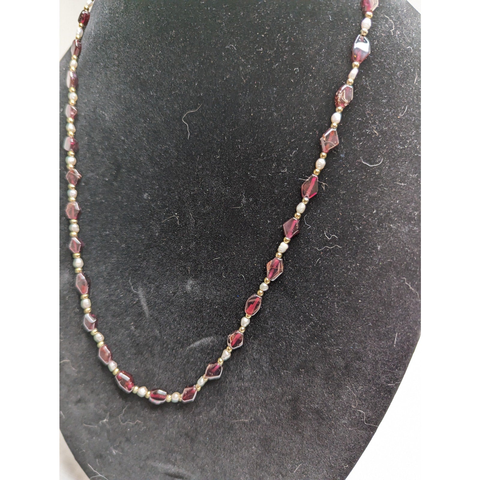 Vintage 1990s Single Strand Dainty Beaded Necklace Purple and Pearl