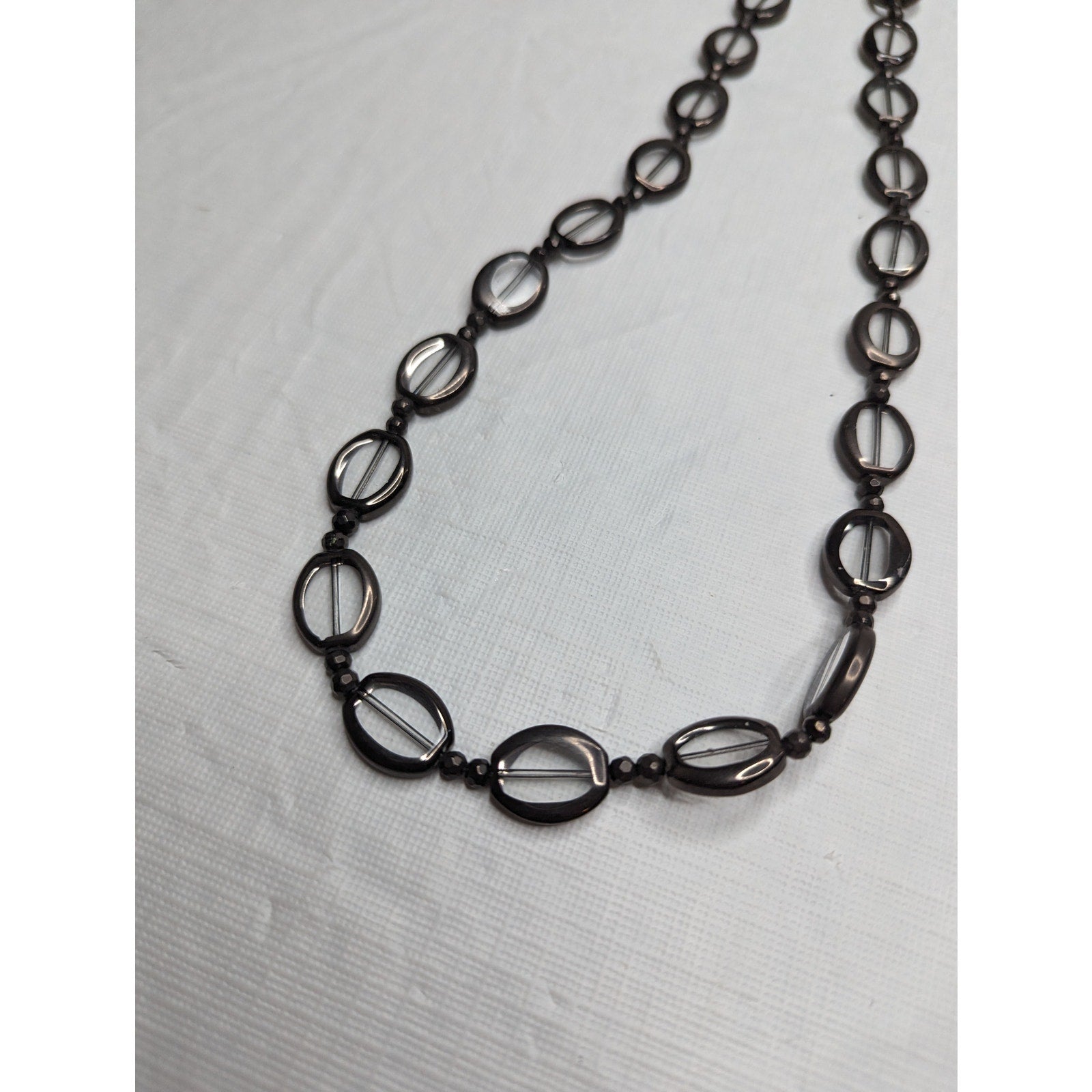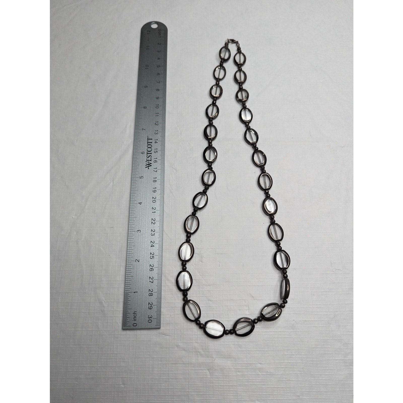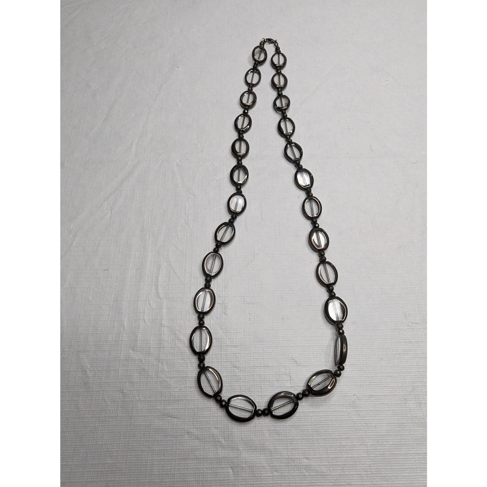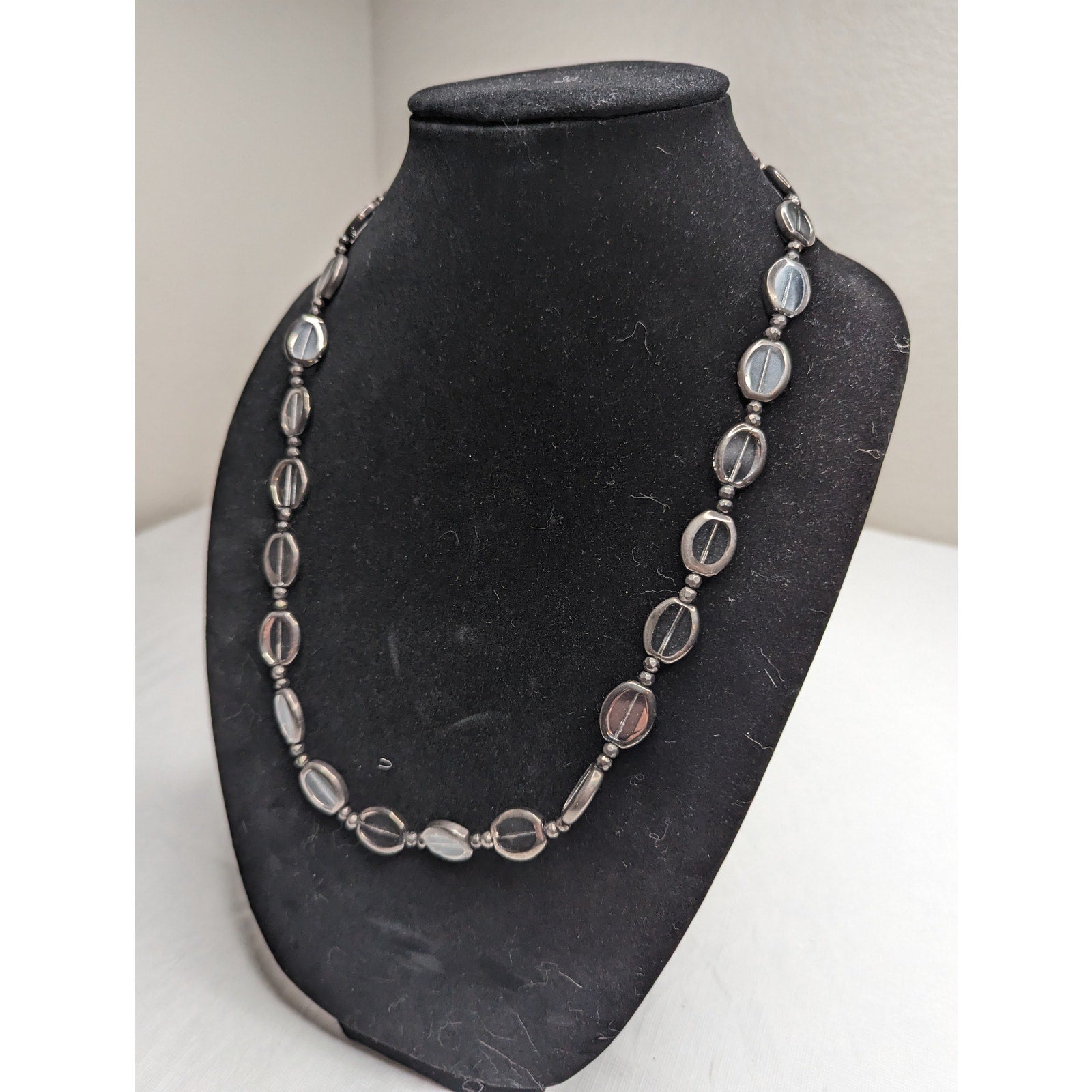 Vintage 1990s Single Strand Glass Beaded Necklace Transparent Clear Oval Beads