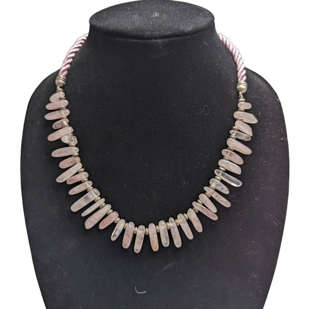 Vintage 1990s Single Strand Glass Beaded Statement Piece Necklace Light Pink