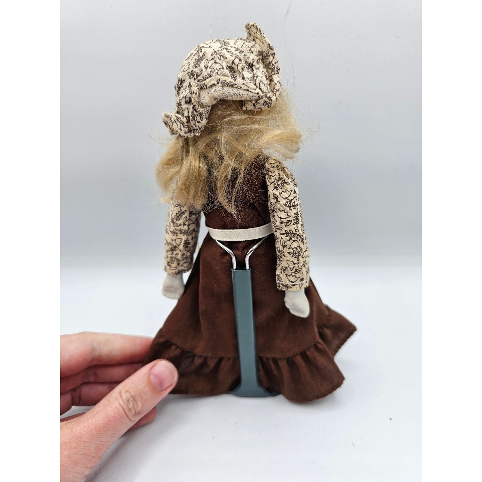 Vintage 1990s Small Porcelain Doll Blonde Fair Skin Peasant Style Dress