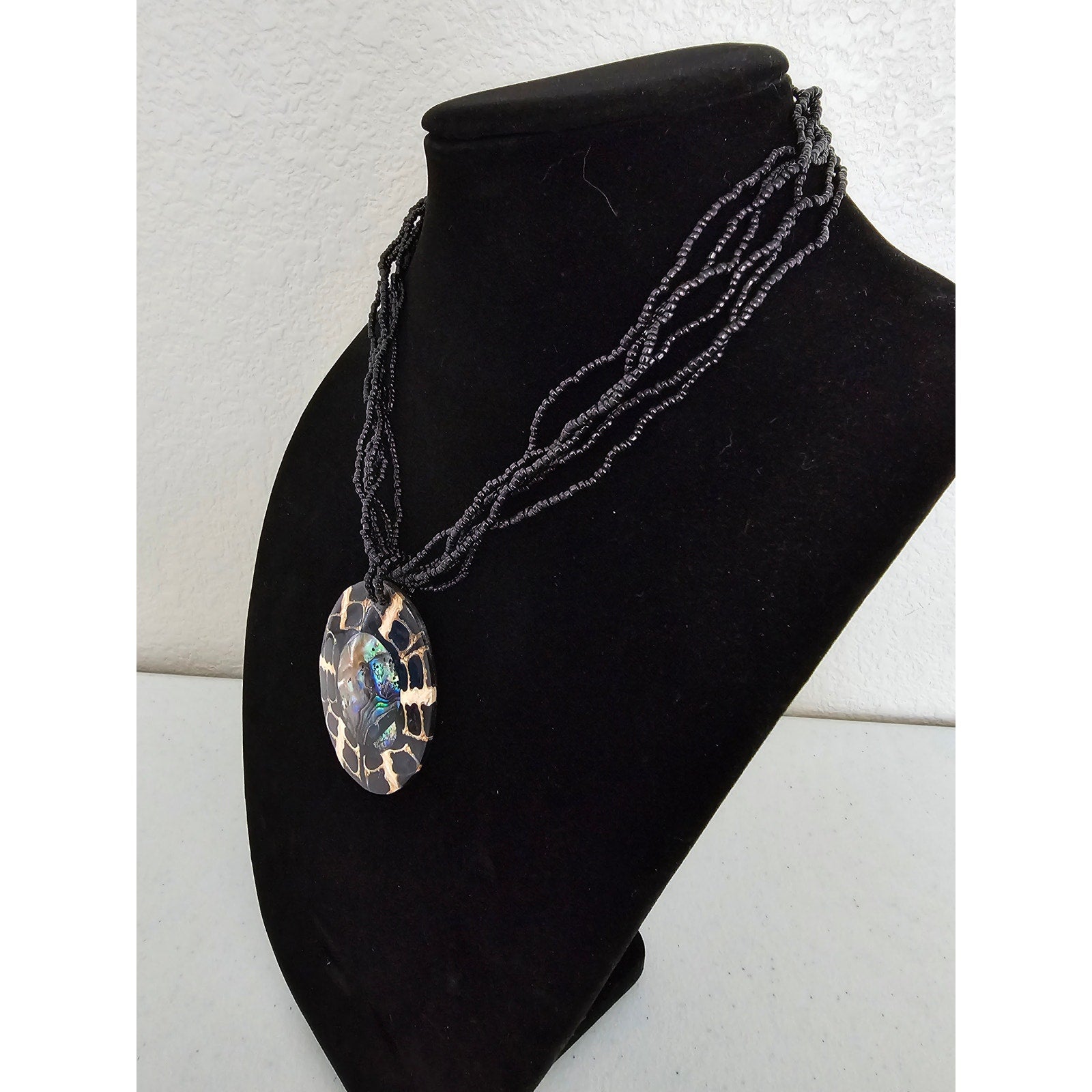 Vintage 1990s Statement Piece Multi Strand Pendant Necklac Black Mother of Pearl