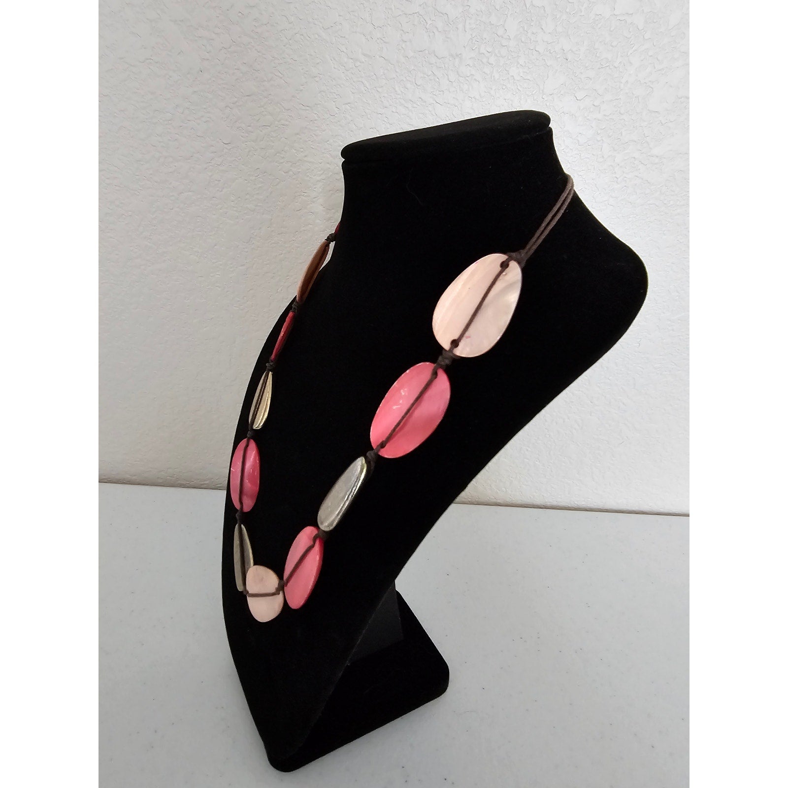 Vintage 1990s Statement Piece Single Strand Disk Necklace Pink Cream