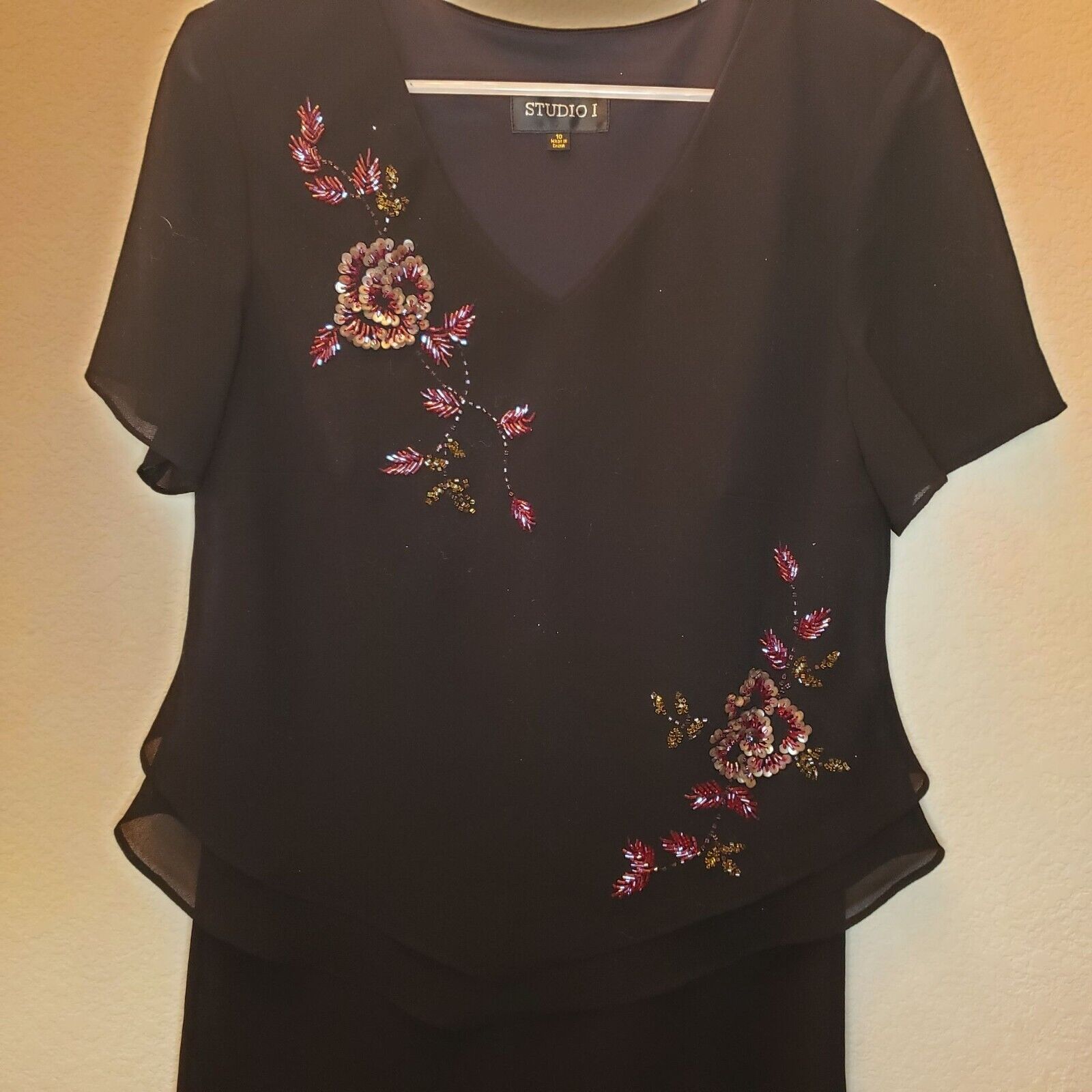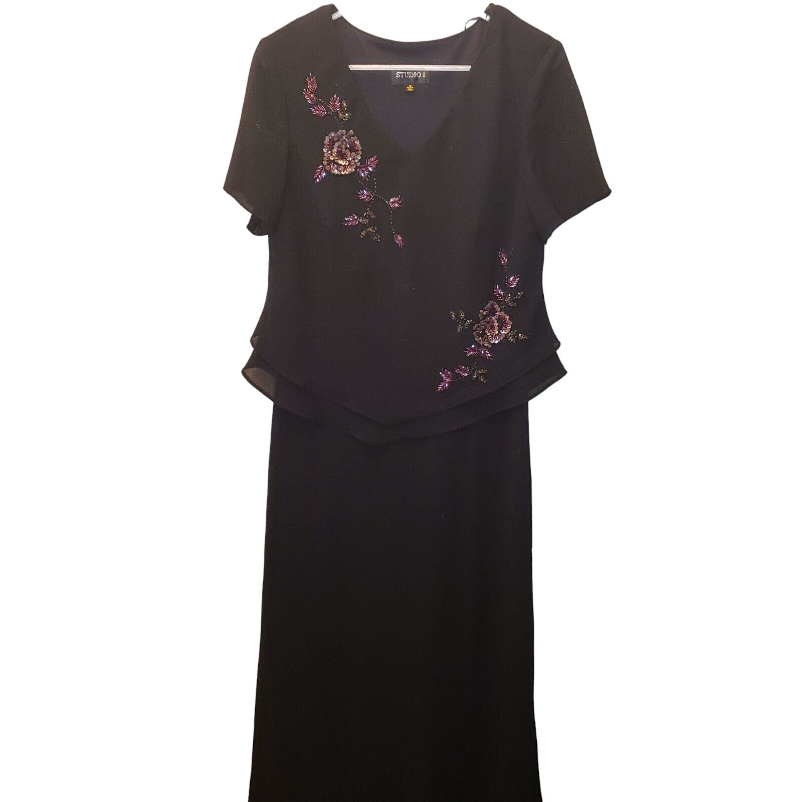 Vintage 1990s Studio I Womens Sz 10 Maxi Dress Formal Black Beaded