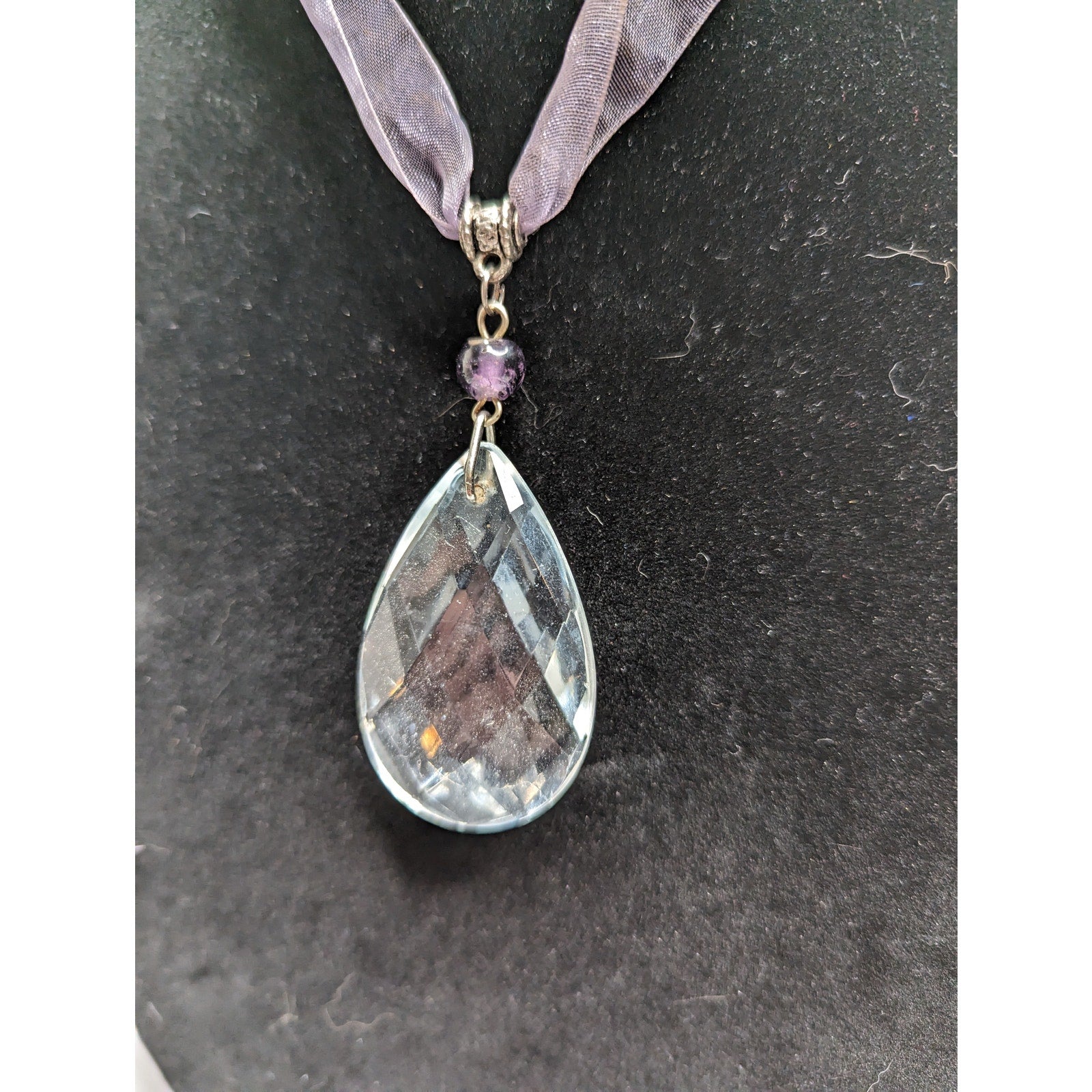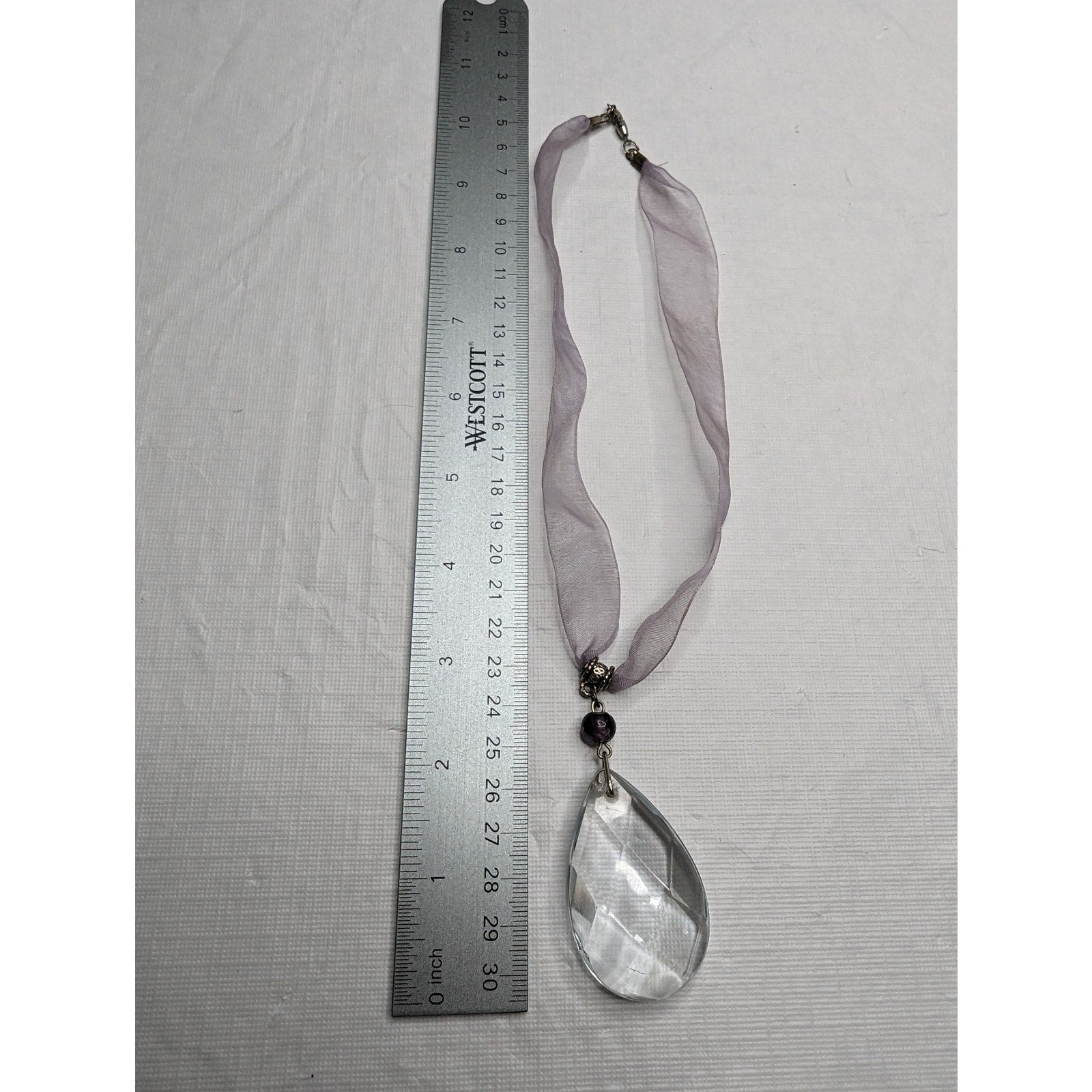 Vintage 1990s Teardrop Style Light Purple Pendant Necklace Ribbon