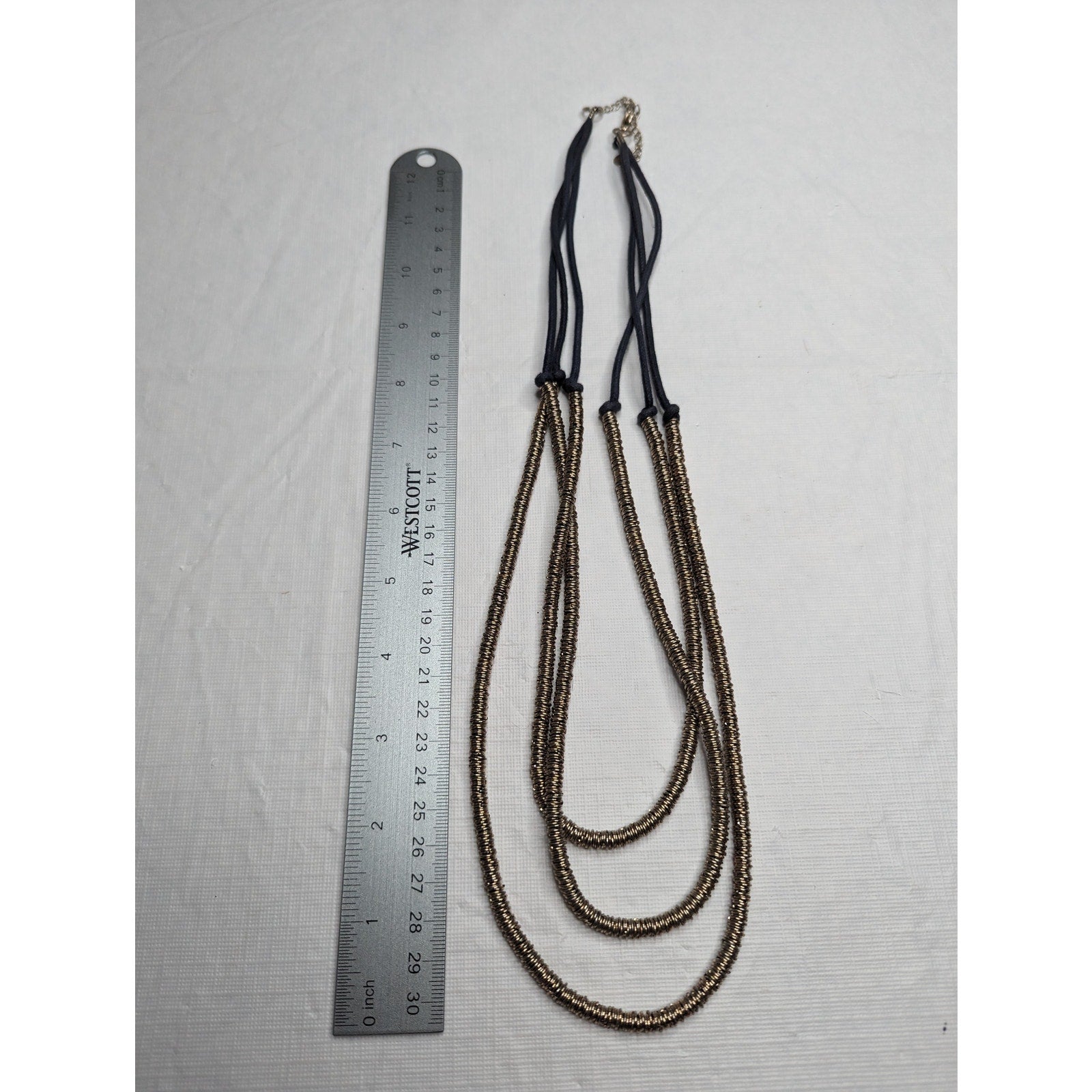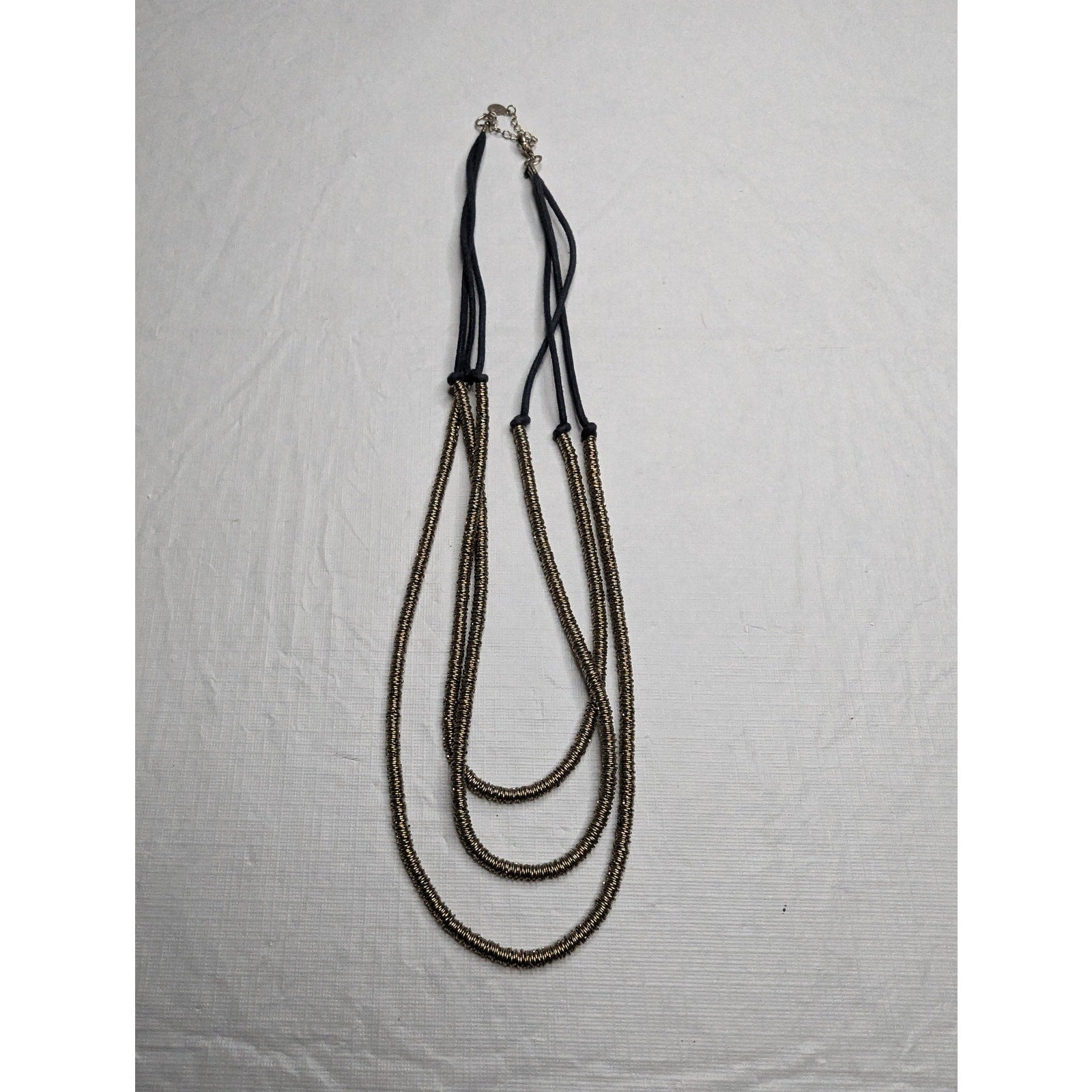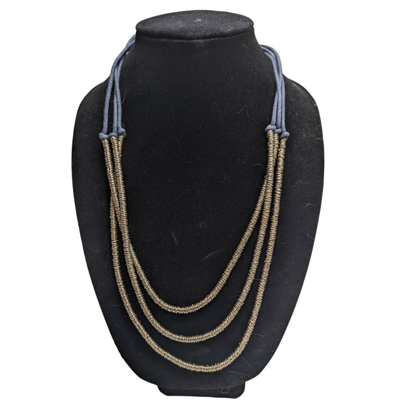 Vintage 1990s Womens 3 Strand Statement Necklace Gold Rope Wrapped Blue Knotted