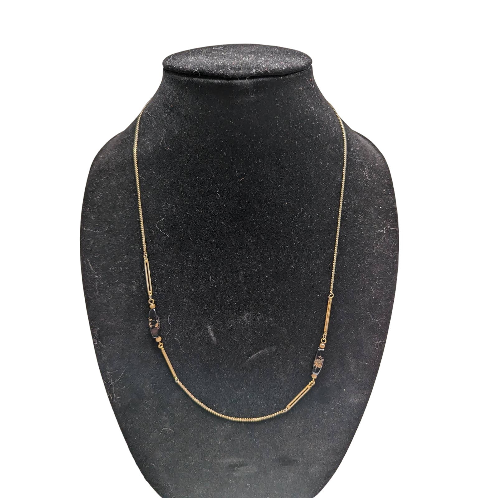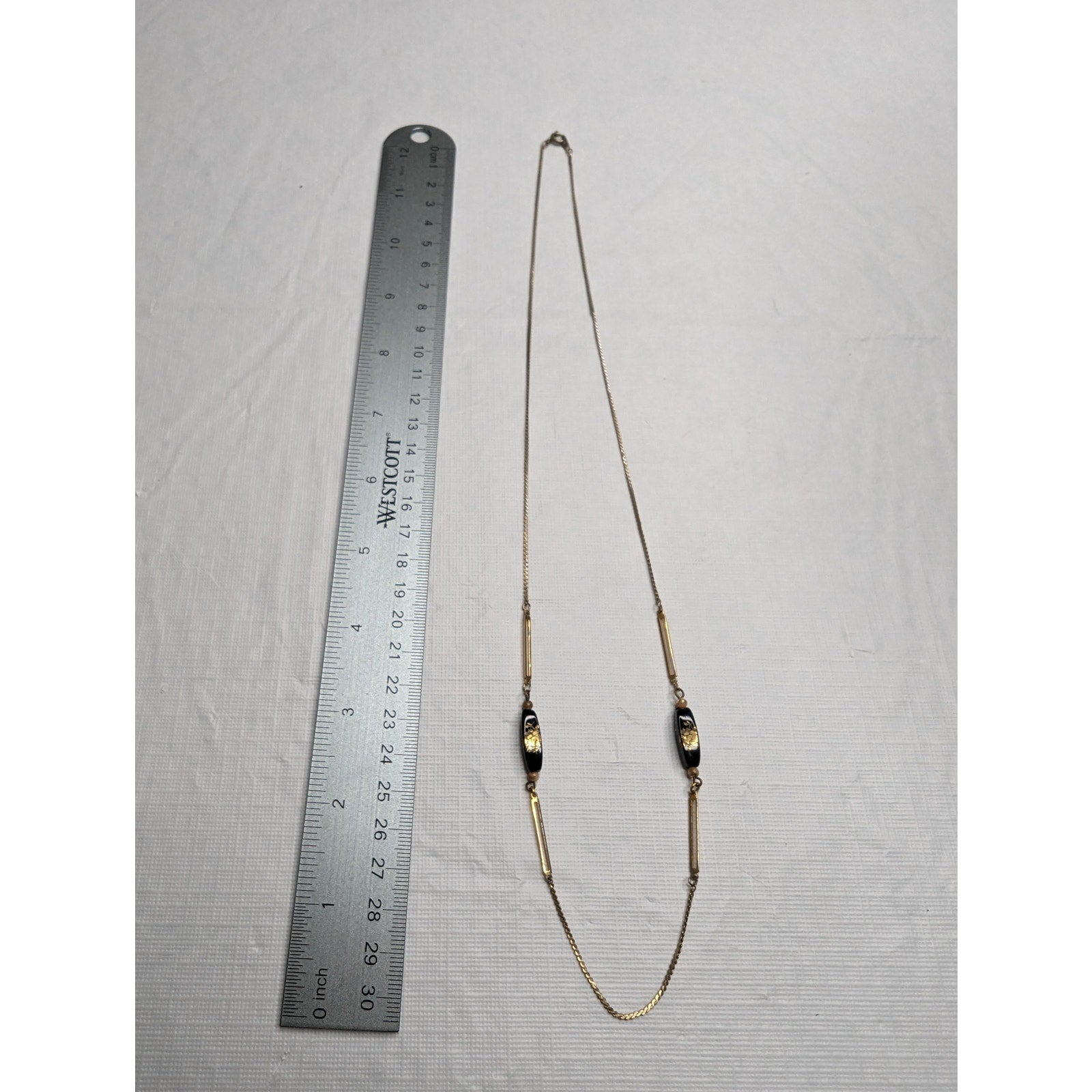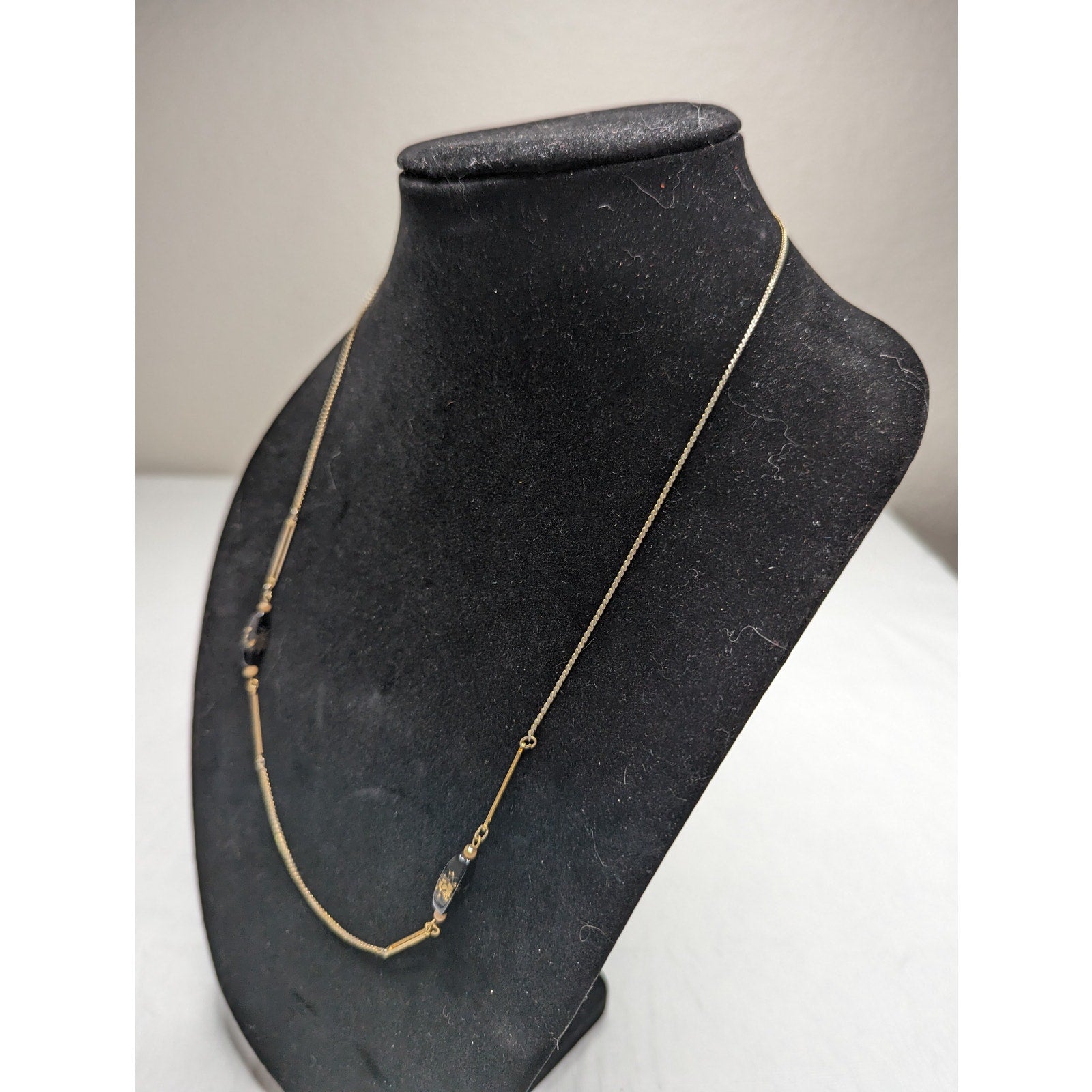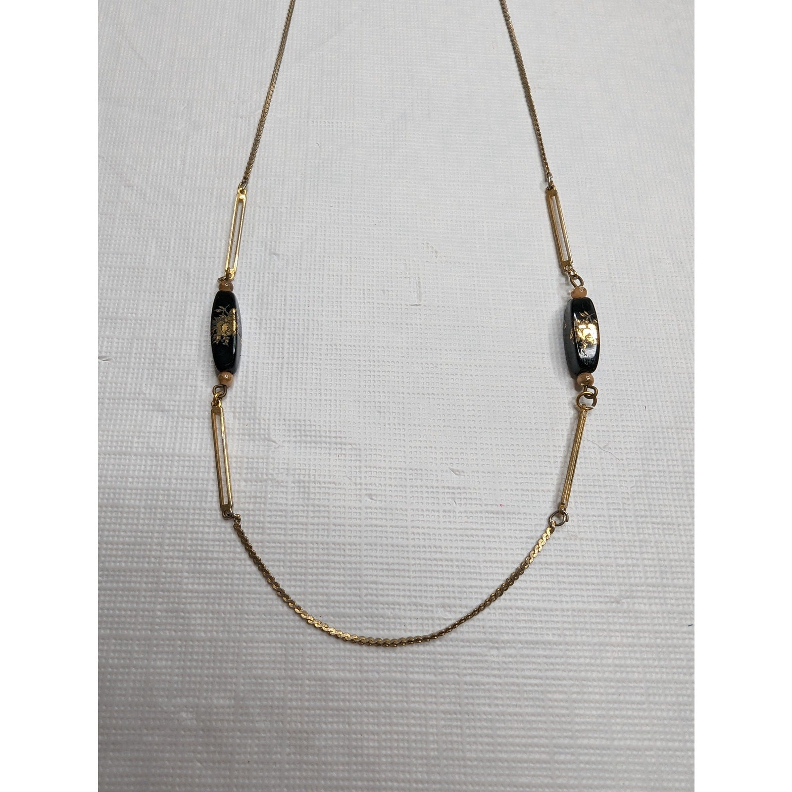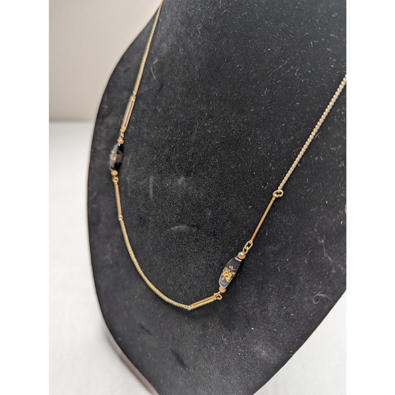 Vintage 1990s Womens Gold Tone Beaded Dainty Necklace Black Floral Beads