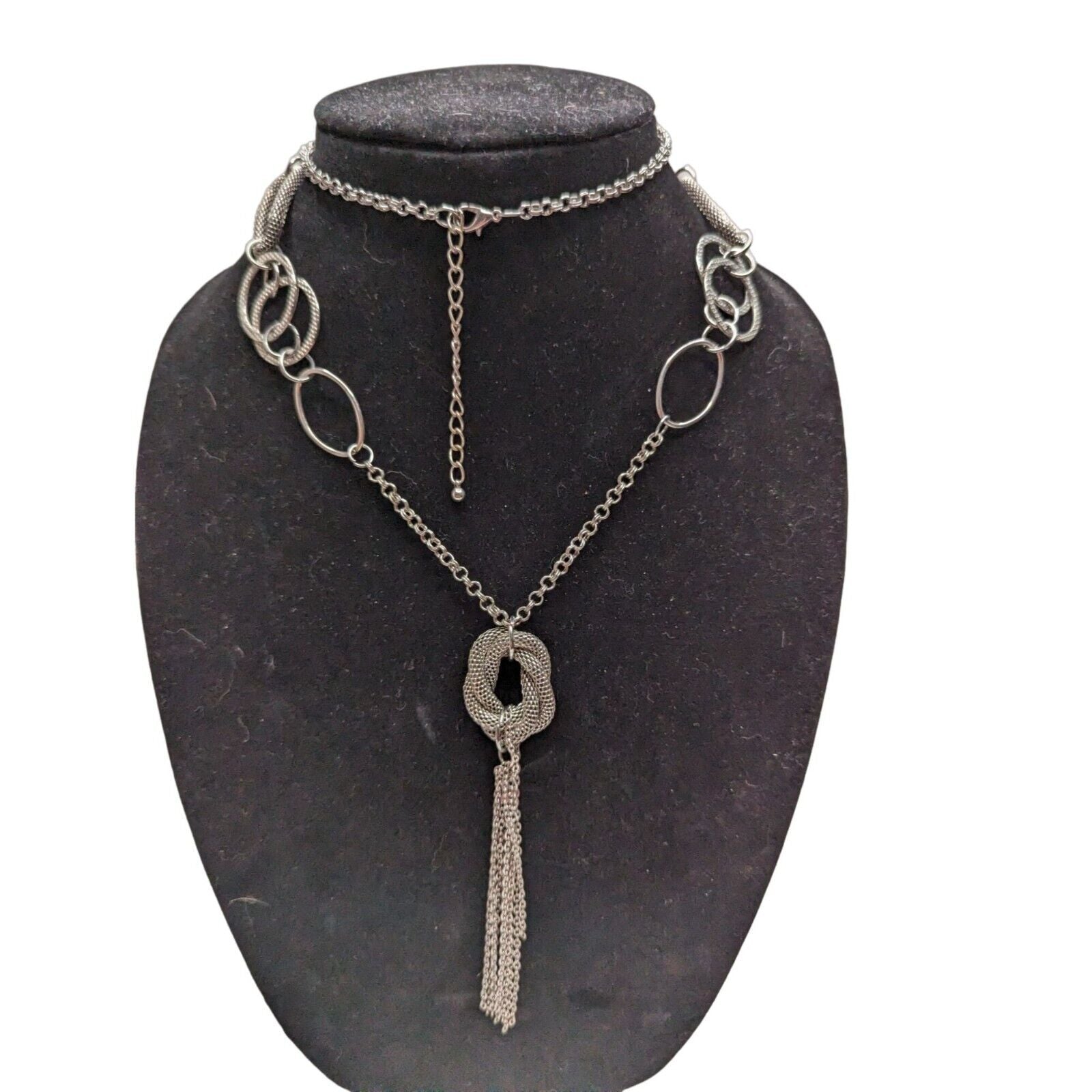 Vintage 1990s Womens Silver Tone Long Statement Necklace