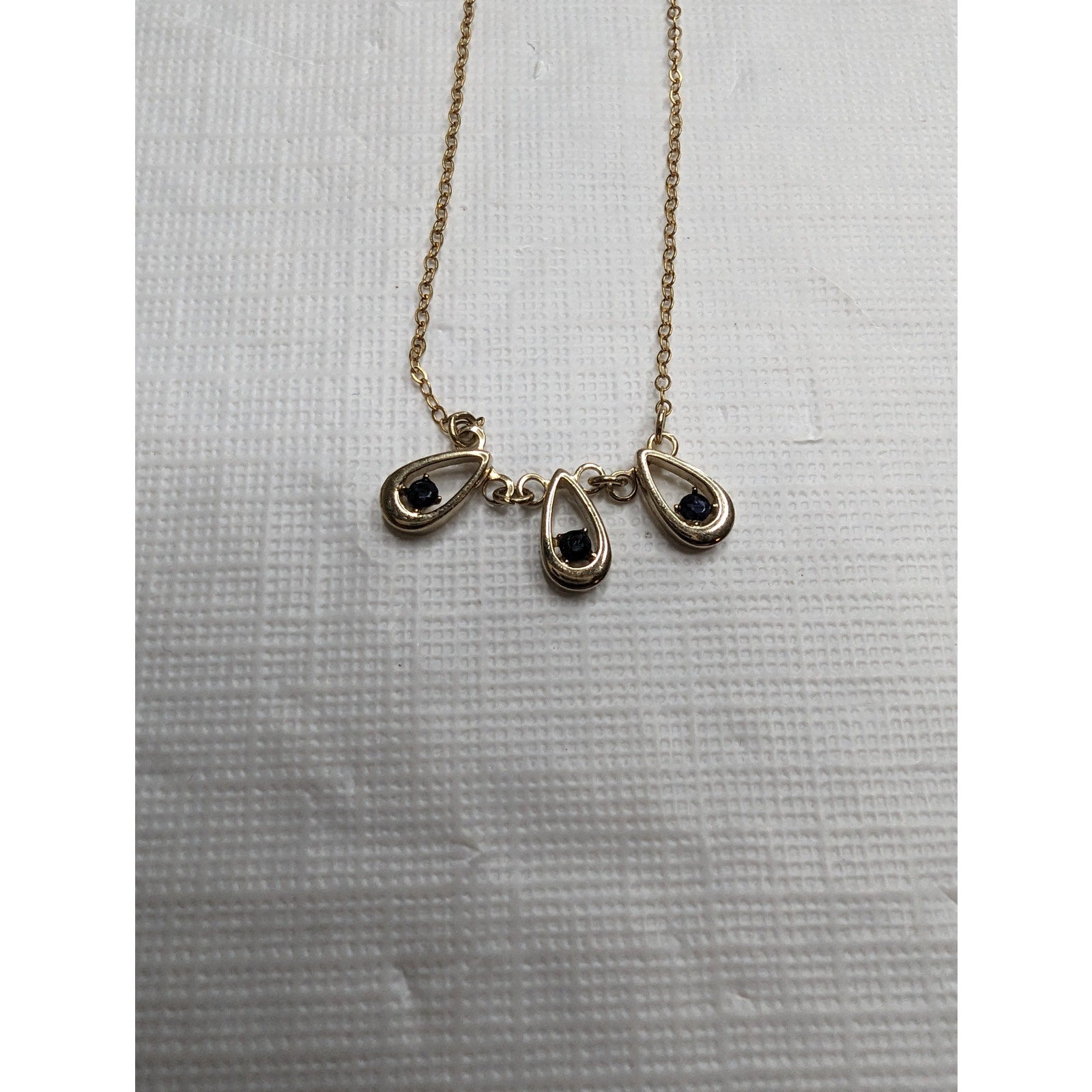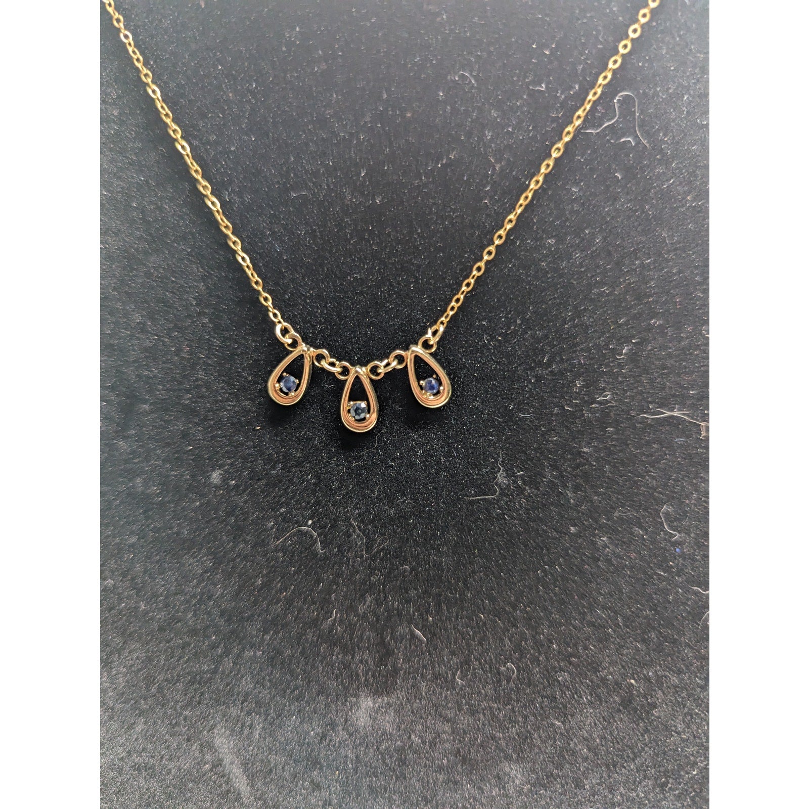 Vintage 1990s Y2K Delicate Formal Necklace Gold Tone w/ Blue Stones