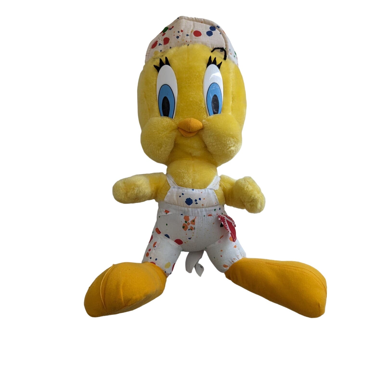 Vintage 1998 Tweety Bird Looney Tunes Plush Stuffed Animal Painter Outfit 16"