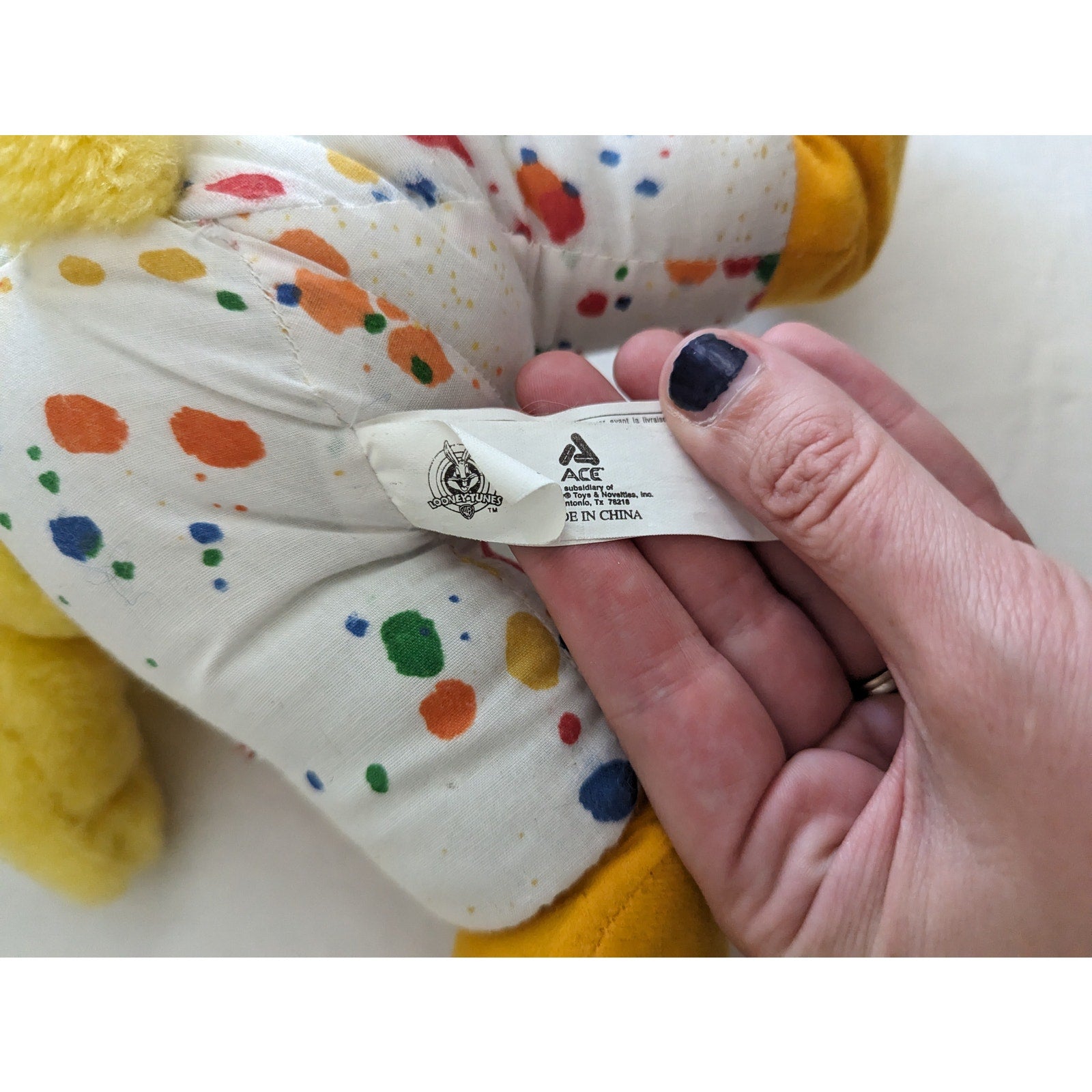 This vintage 1998 Tweety Bird plush stuffed animal is dressed in a painter outfit, inspired by the iconic Looney Tunes character. With a height of 16 inches, this collectible item is sure to be a great addition to any fan's collection. The attention to detail in the design of the outfit is stunning, and the plush material makes it a great item to cuddle with. Don't miss out on the chance to own this unique piece of memorabilia!