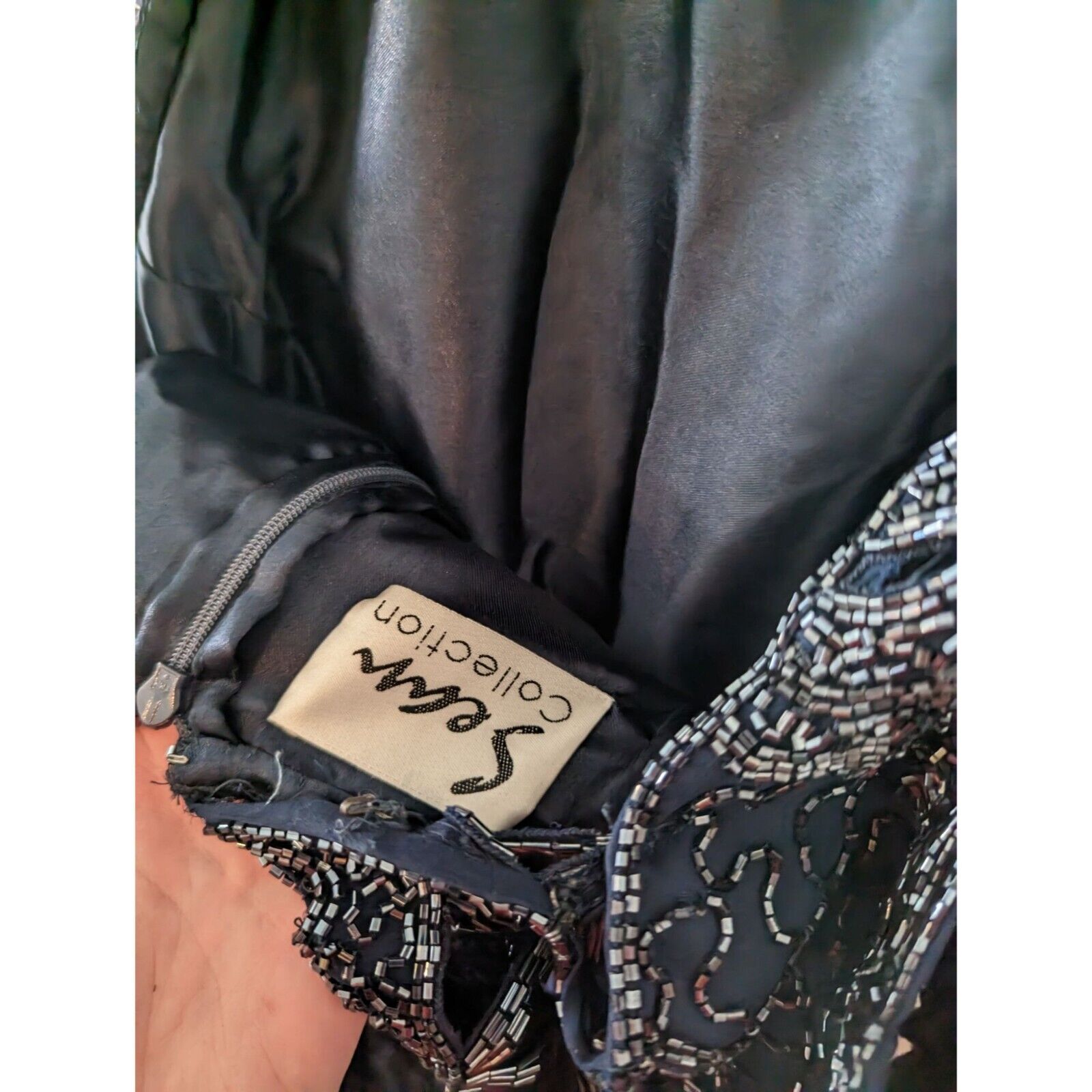 vintage 90s Sean Collection 100% silk beaded formal gown Navy Sz XL