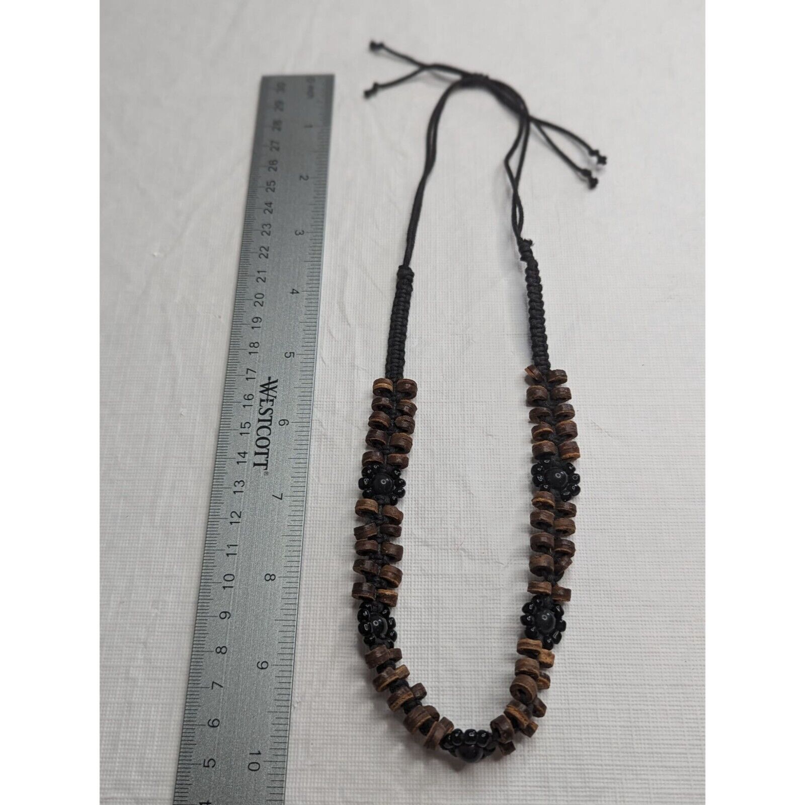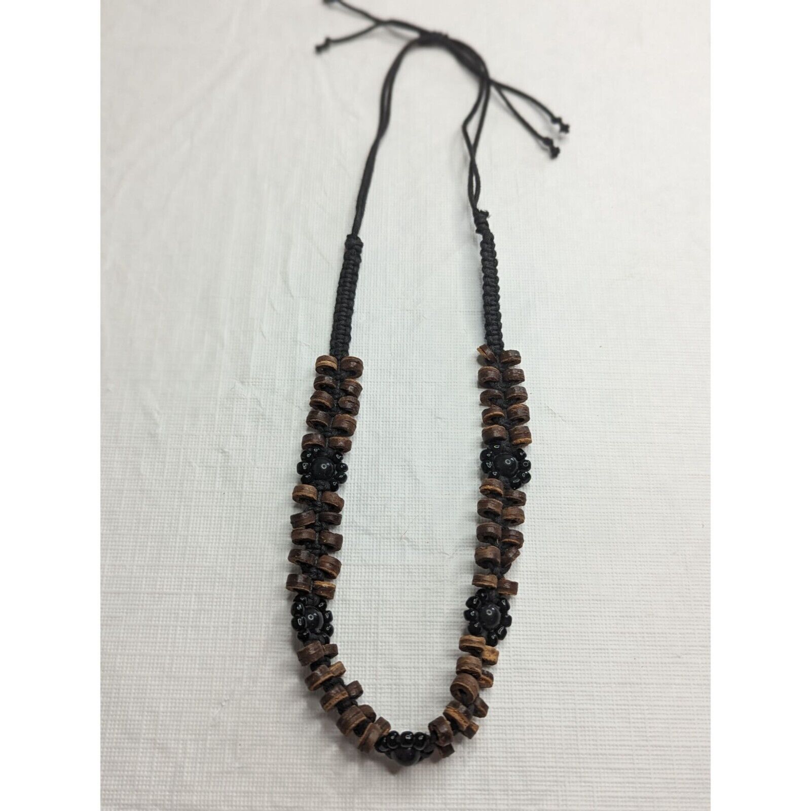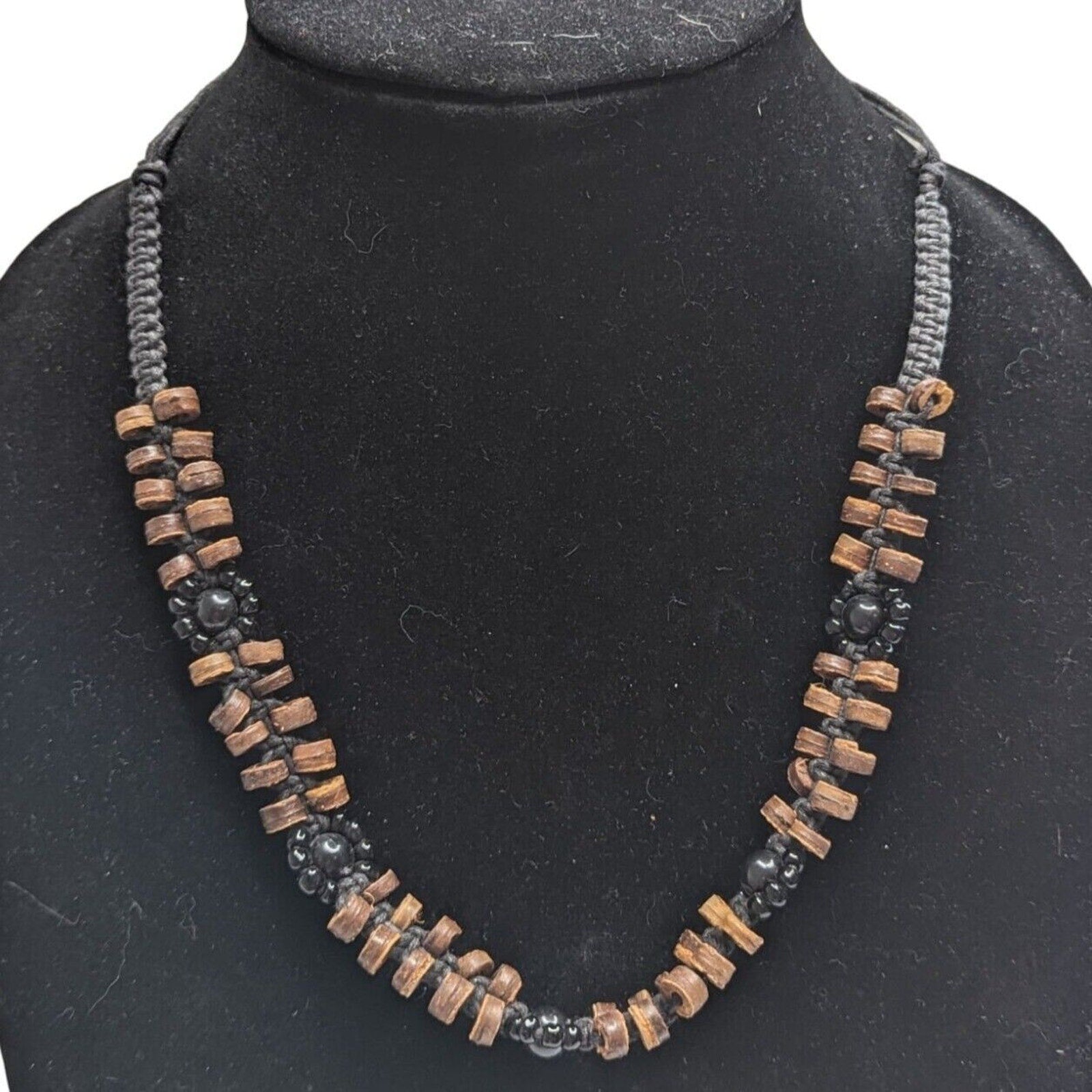 Vintage African 2 Strand Wooden and Beaded Necklace Black Brown