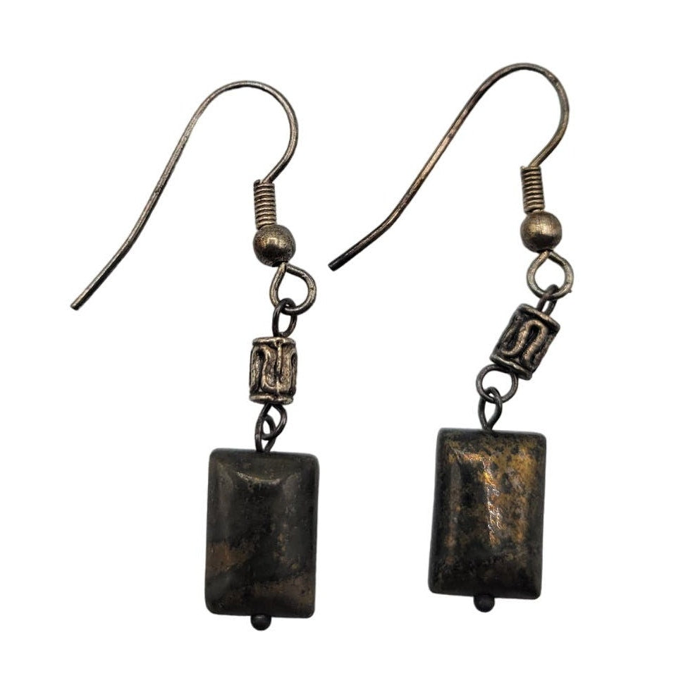 Vintage Y2K French Hook Earrings Aztec Geometric Bronze Colored Stone