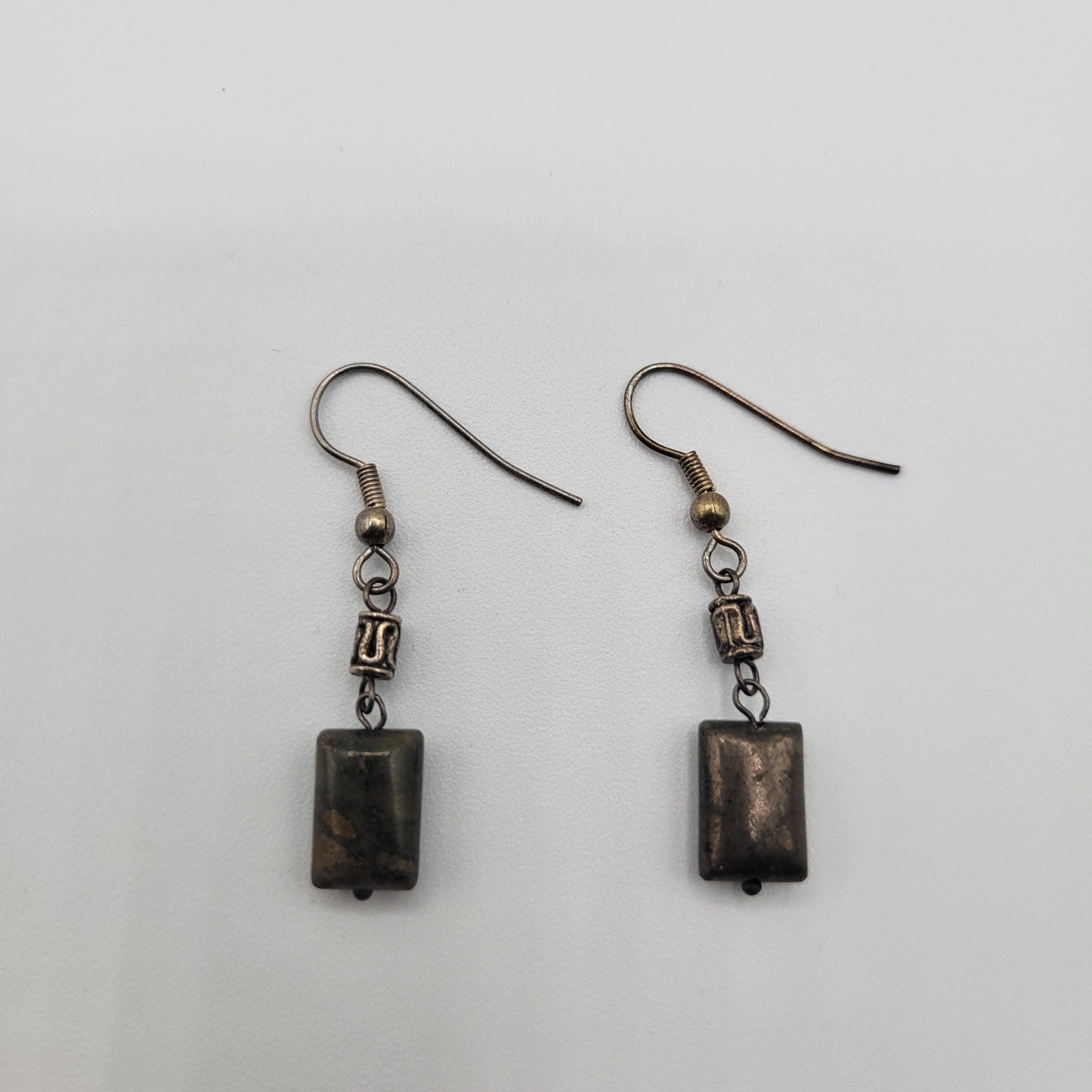 Make a statement with these vintage Y2K French hook earrings. Featuring an Aztec geometric design with bronze colored stones, these earrings are perfect for adding a touch of sophistication to any outfit. Whether you're dressing up for a night out or just want to add some charm to your everyday look, these earrings are the perfect accessory.