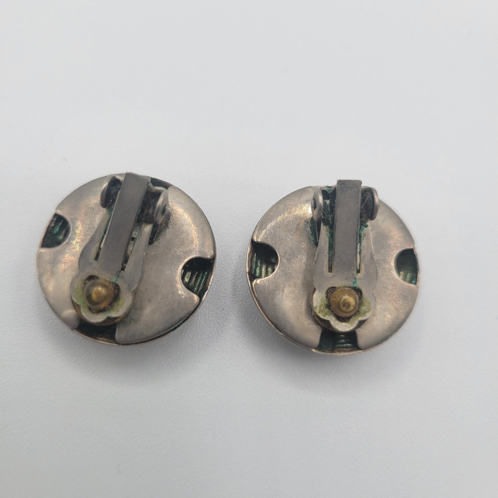 Vintage 1960s Clip On Earring Set Silver Tone Round Nautical