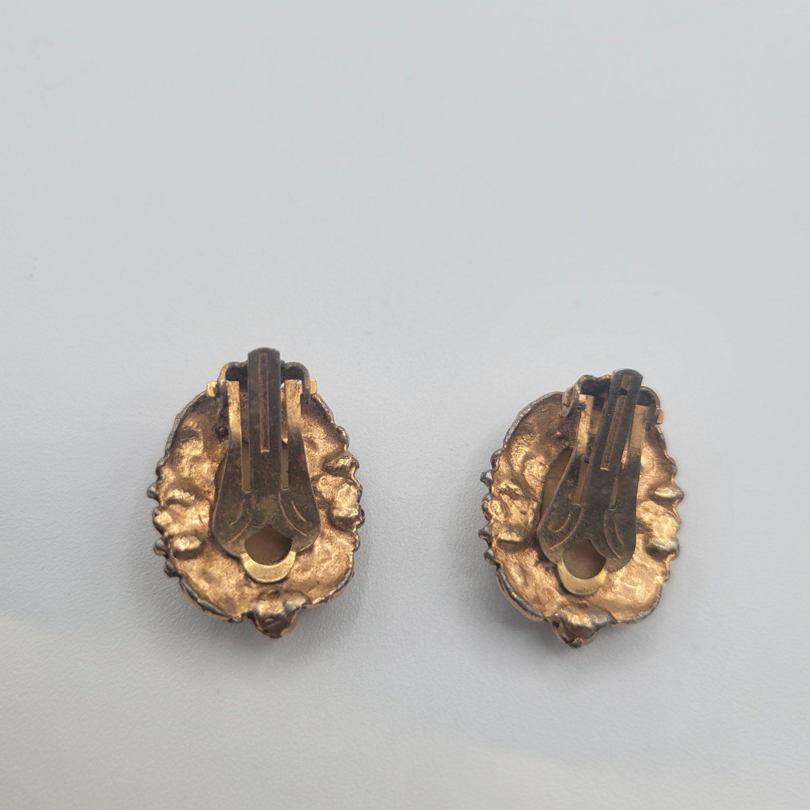 Vintage Gold Tone Oval Shape Clip On Earrings Cream Stone