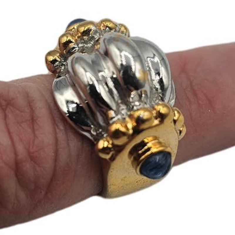 Vintage 1970s Womens Sz 5 Gold and Silver Tone Costume Jewelry Ring Stamped