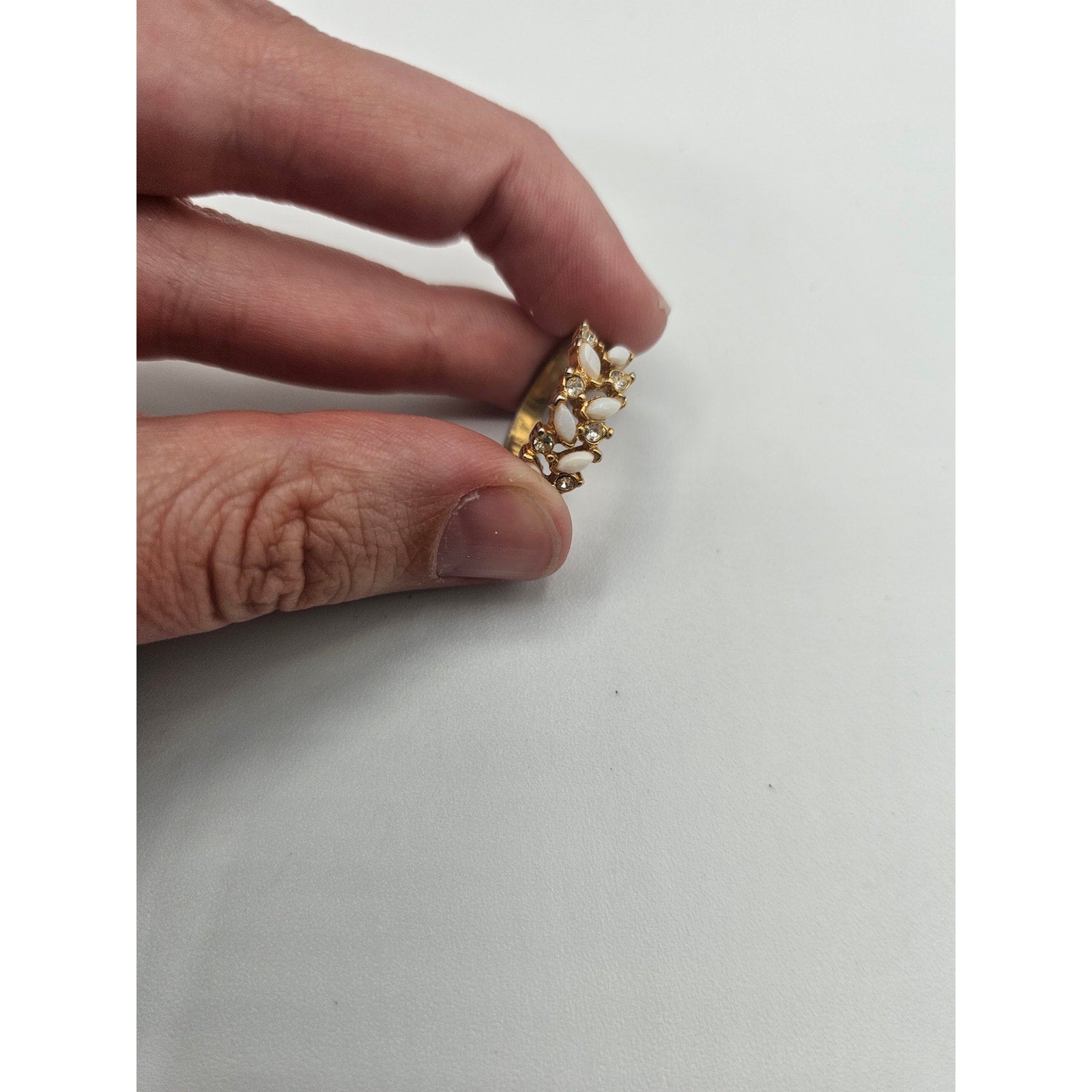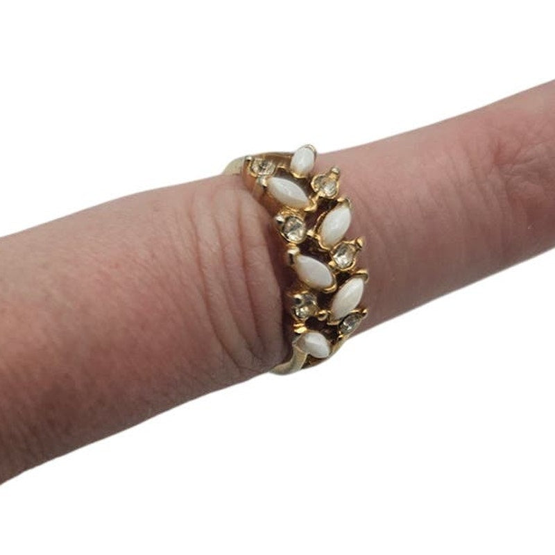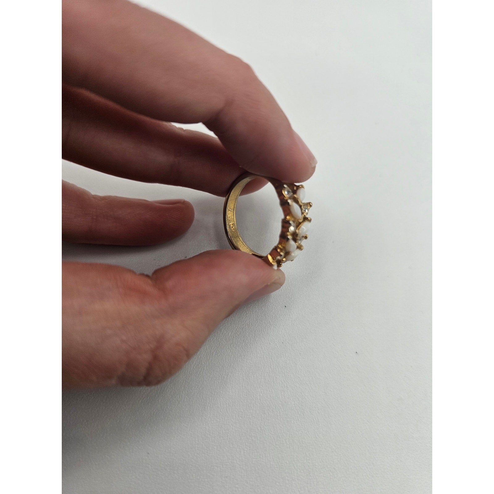 Vintage 1970s Womens Sz 5 Gold Tone Ring Pearl and Crystal Stones