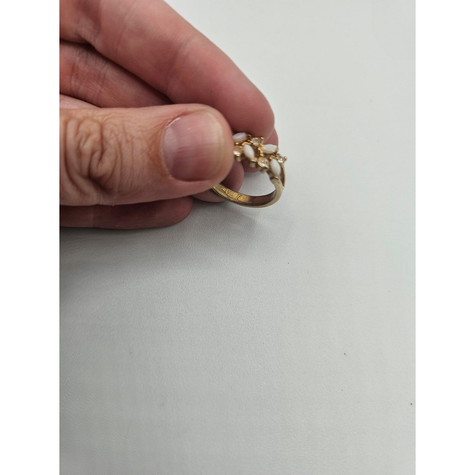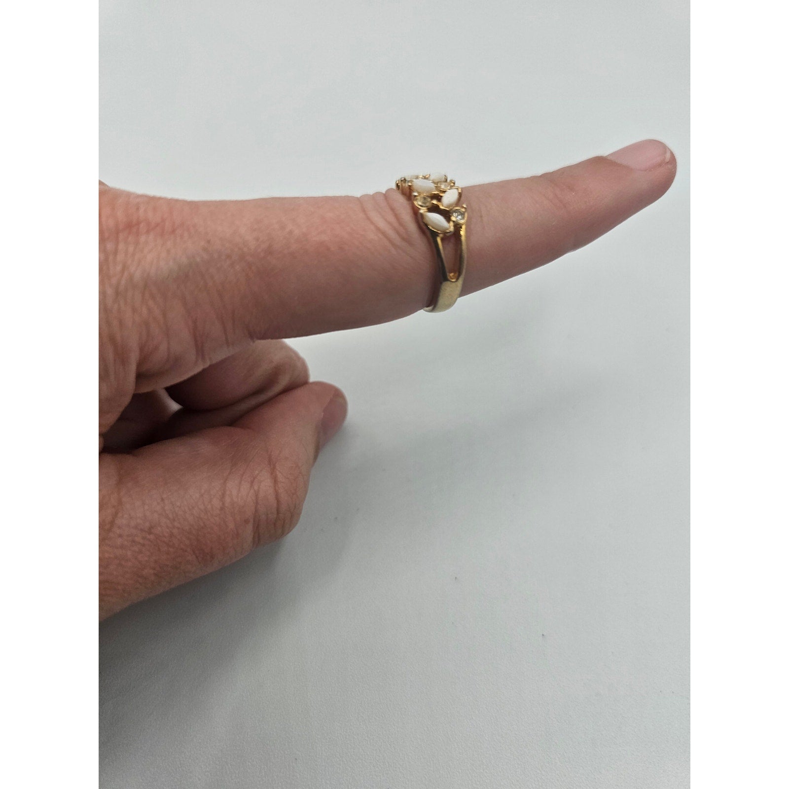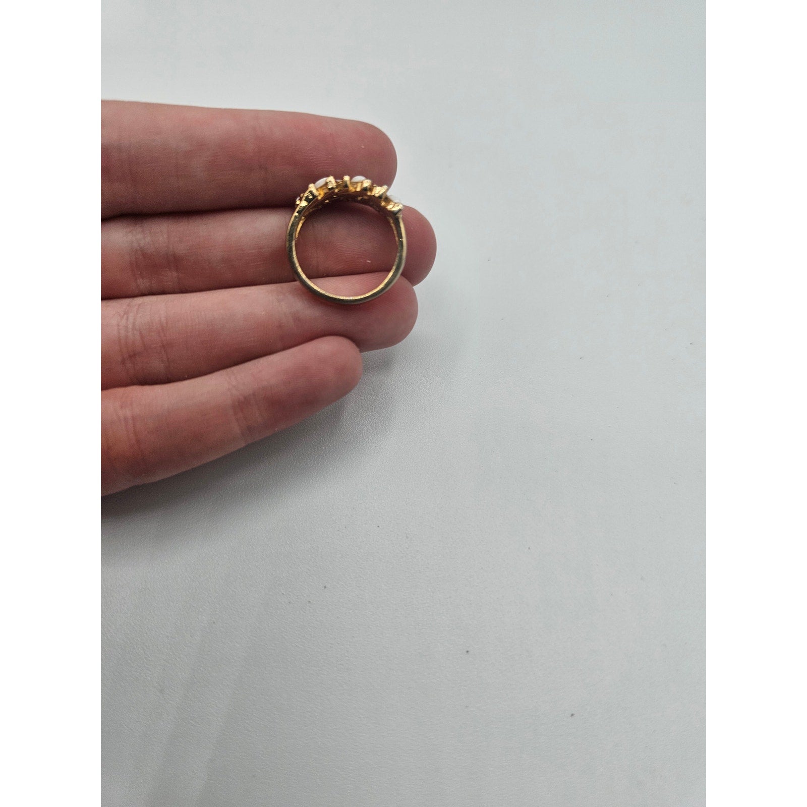 Vintage 1970s Womens Sz 5 Gold Tone Ring Pearl and Crystal Stones