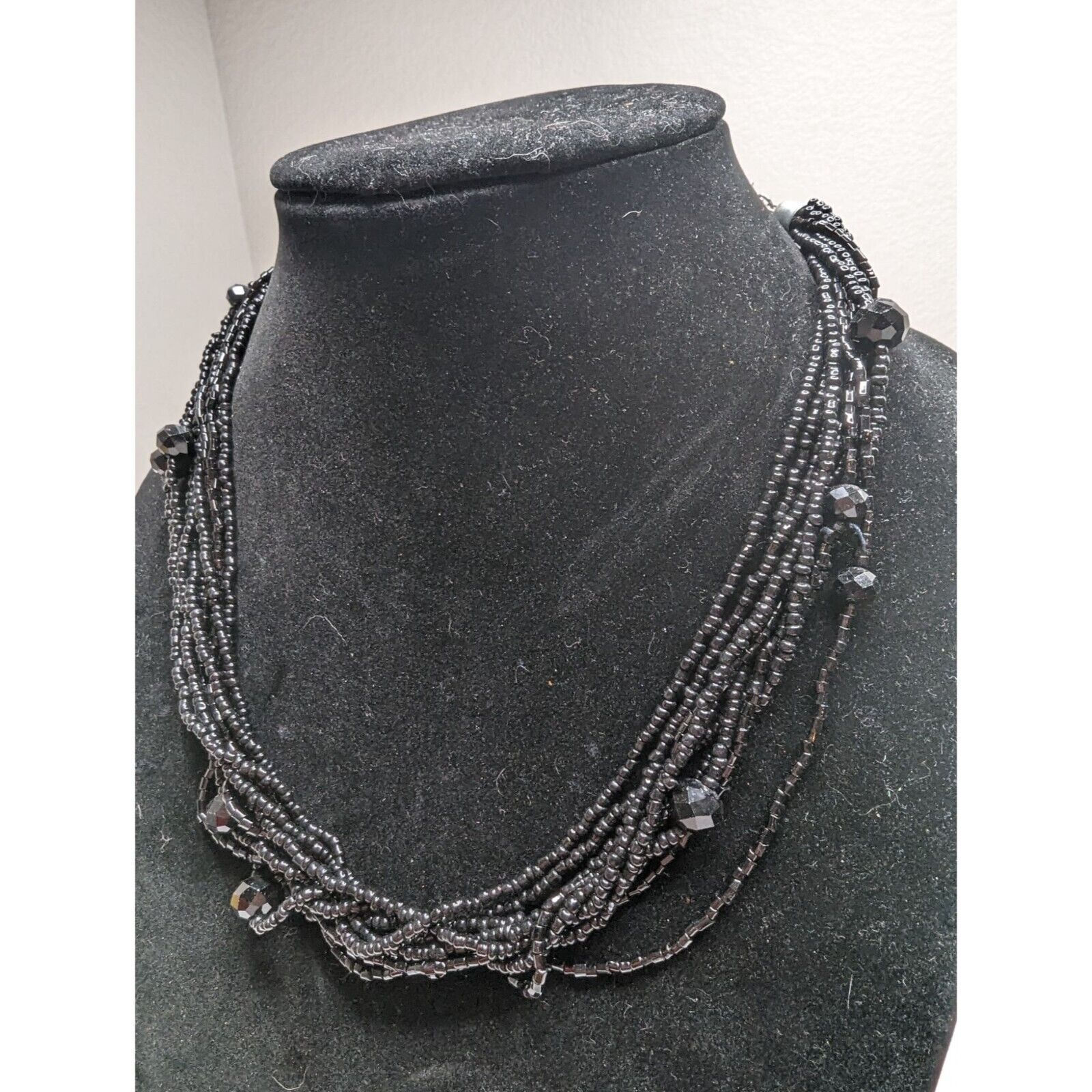Vintage Black Onyx Layered Beaded Necklace Multi strand