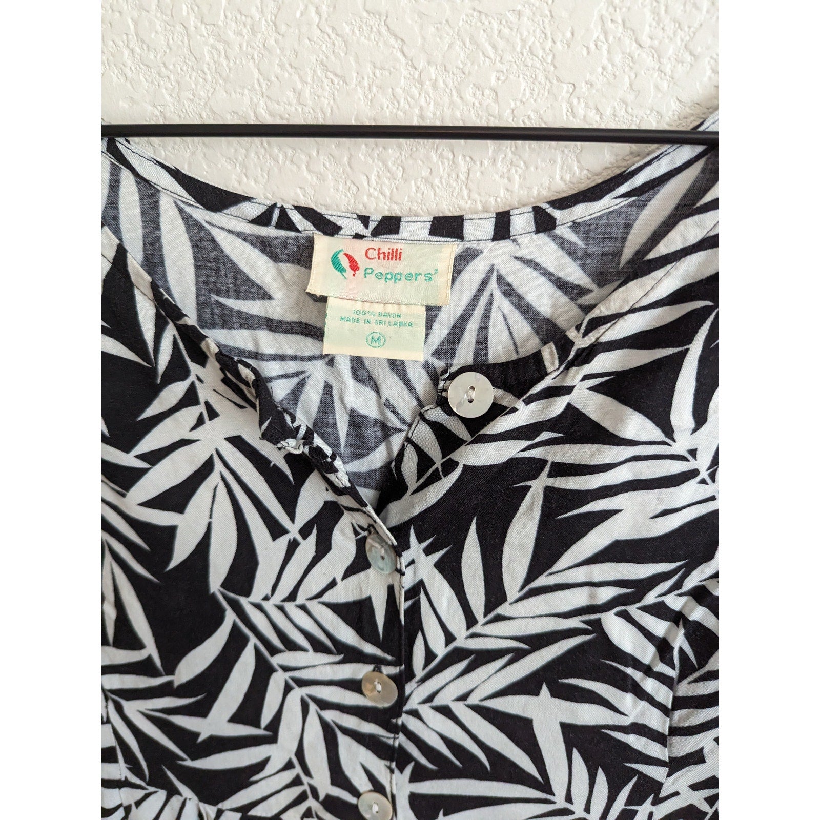 Vintage Chili Peppers Womens Sz M Midi Floral Casual Dress Black White
