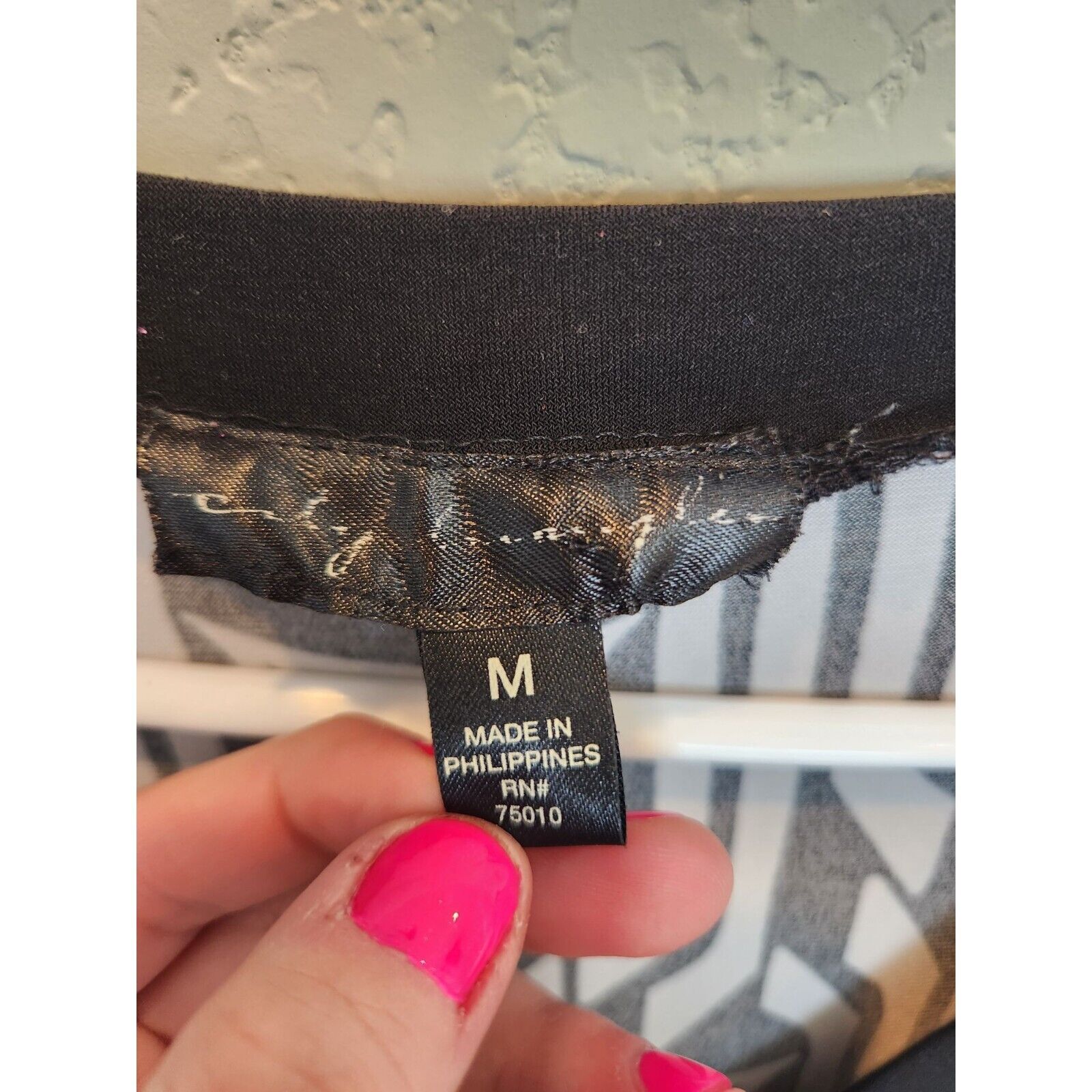 Vintage City Triangles Womens Sz M Knee Length Belted Dress Black White