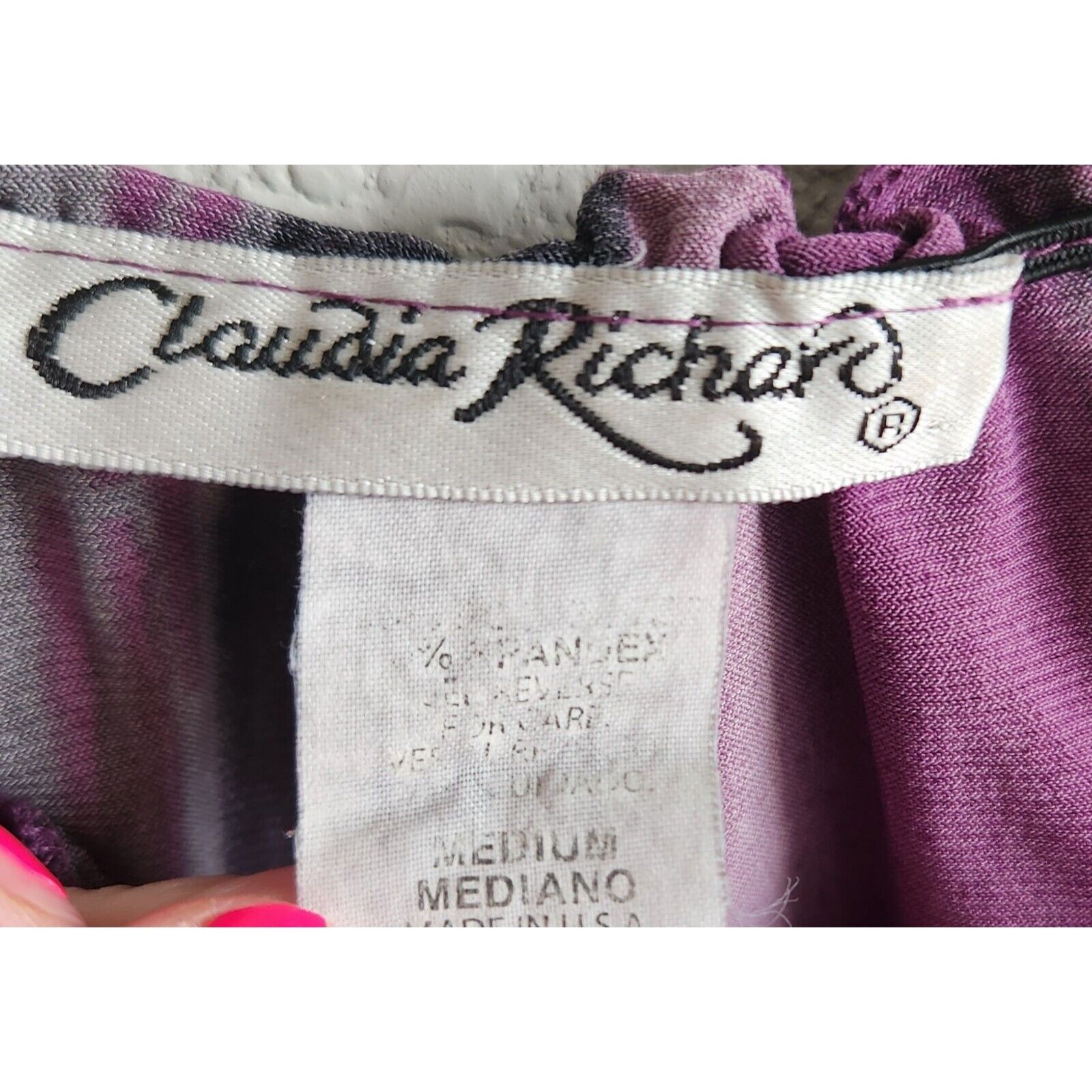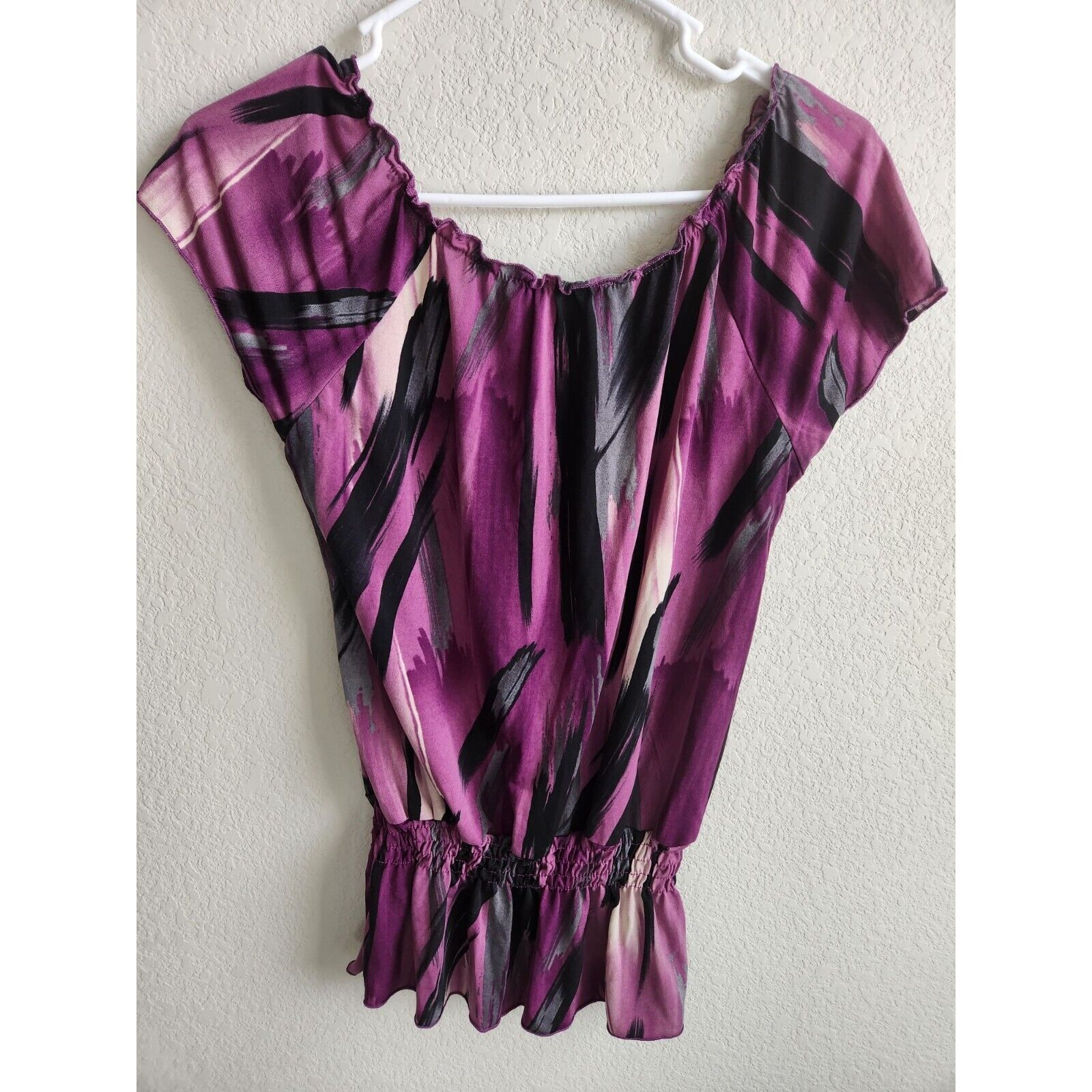 Vintage Claudia Richard Womens Sz M Short Sleeve Wide Neck Blouse Purple