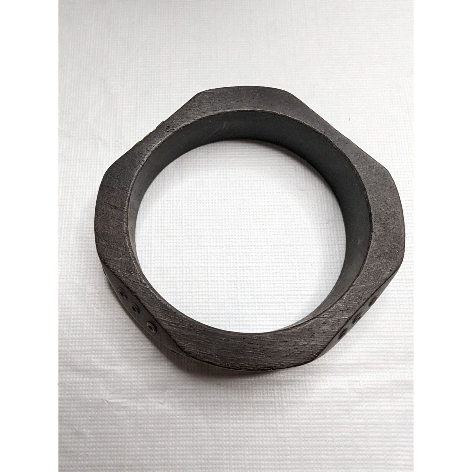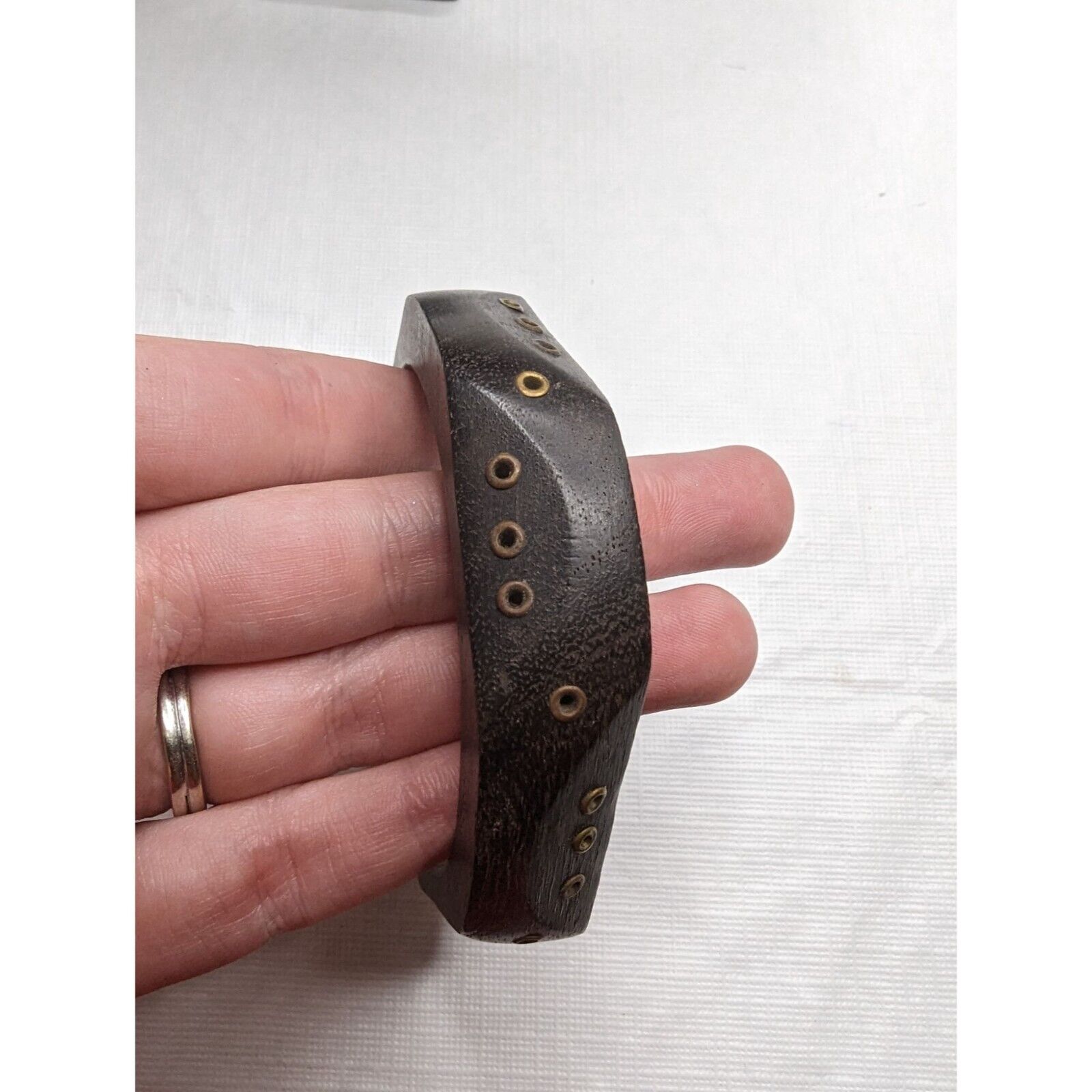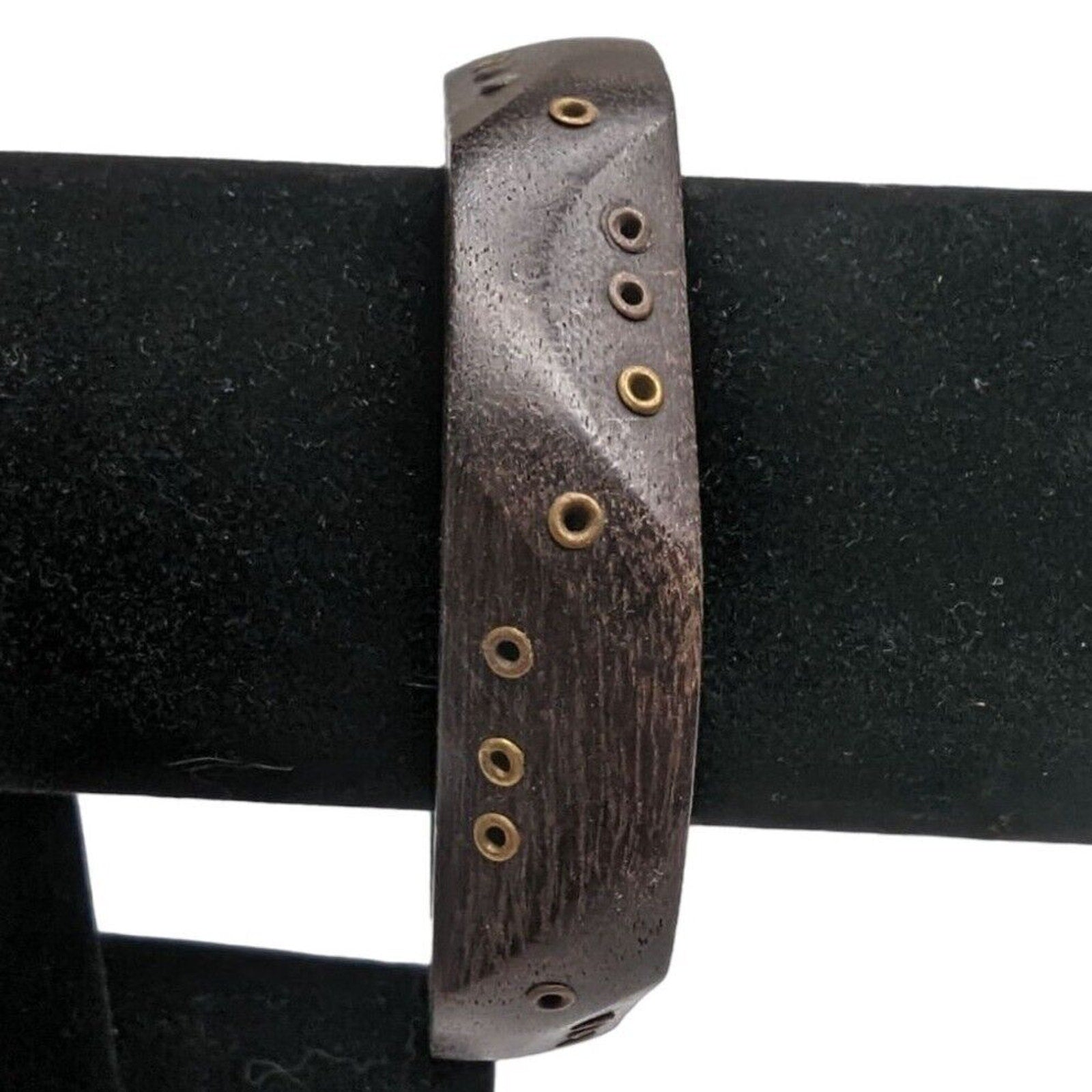 Vintage Dark Brown Wooden Bangle Bracelet Gold Studs Asymmetrical