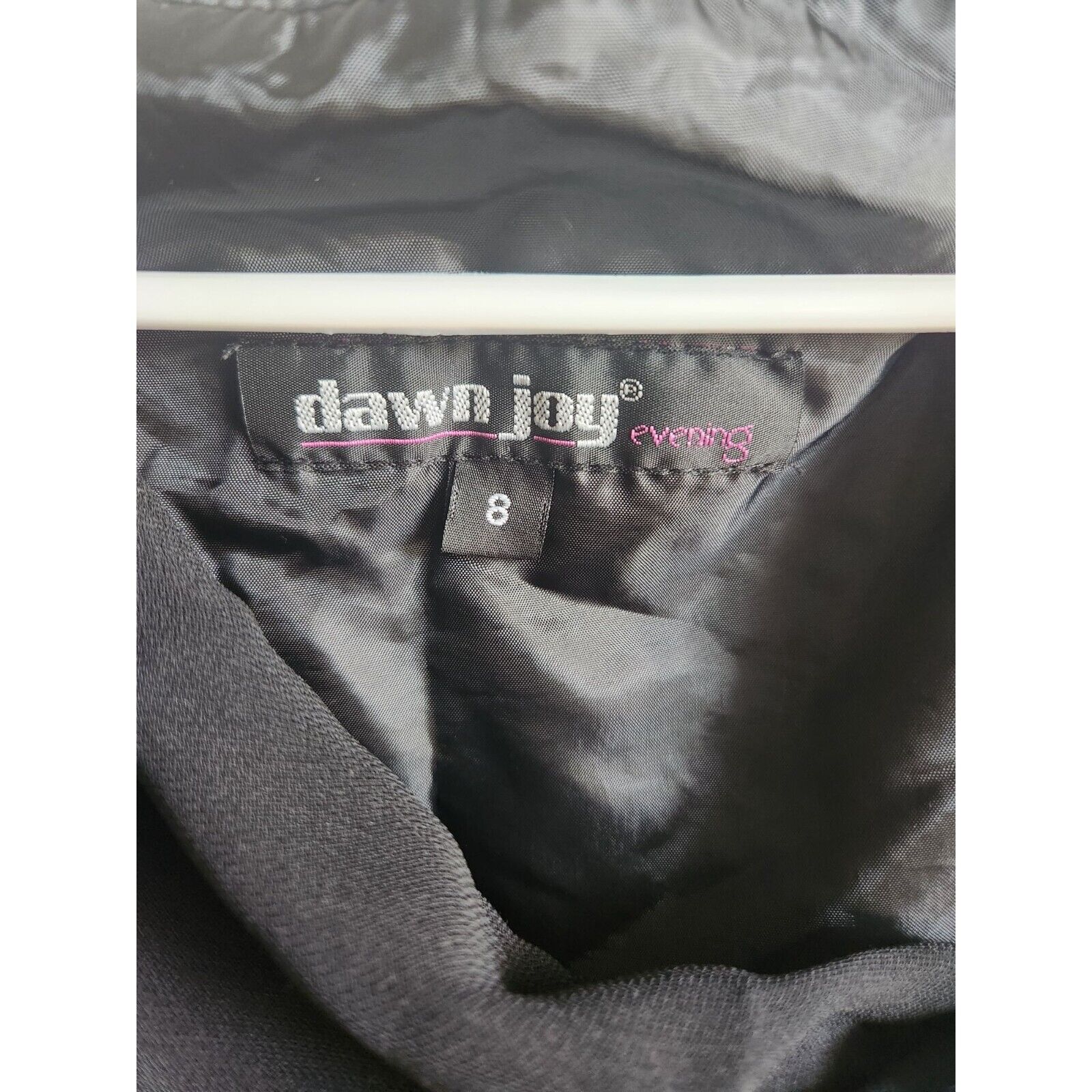Vintage Dawn Joy Evening Women's Sz 8 Midi Length Solid Black Dress. This beautiful piece is perfect for any formal event, with its classic midi length and elegant black color. The dress is made from high-quality materials and has been well taken care of over the years. The dress features a flattering cut and is very comfortable to wear, making it perfect for a night out on the town or a special occasion. The classic design of this dress is timeless and will never go out of style. This is a must-have for any vintage clothing collector or anyone looking for a beautiful, elegant dress.