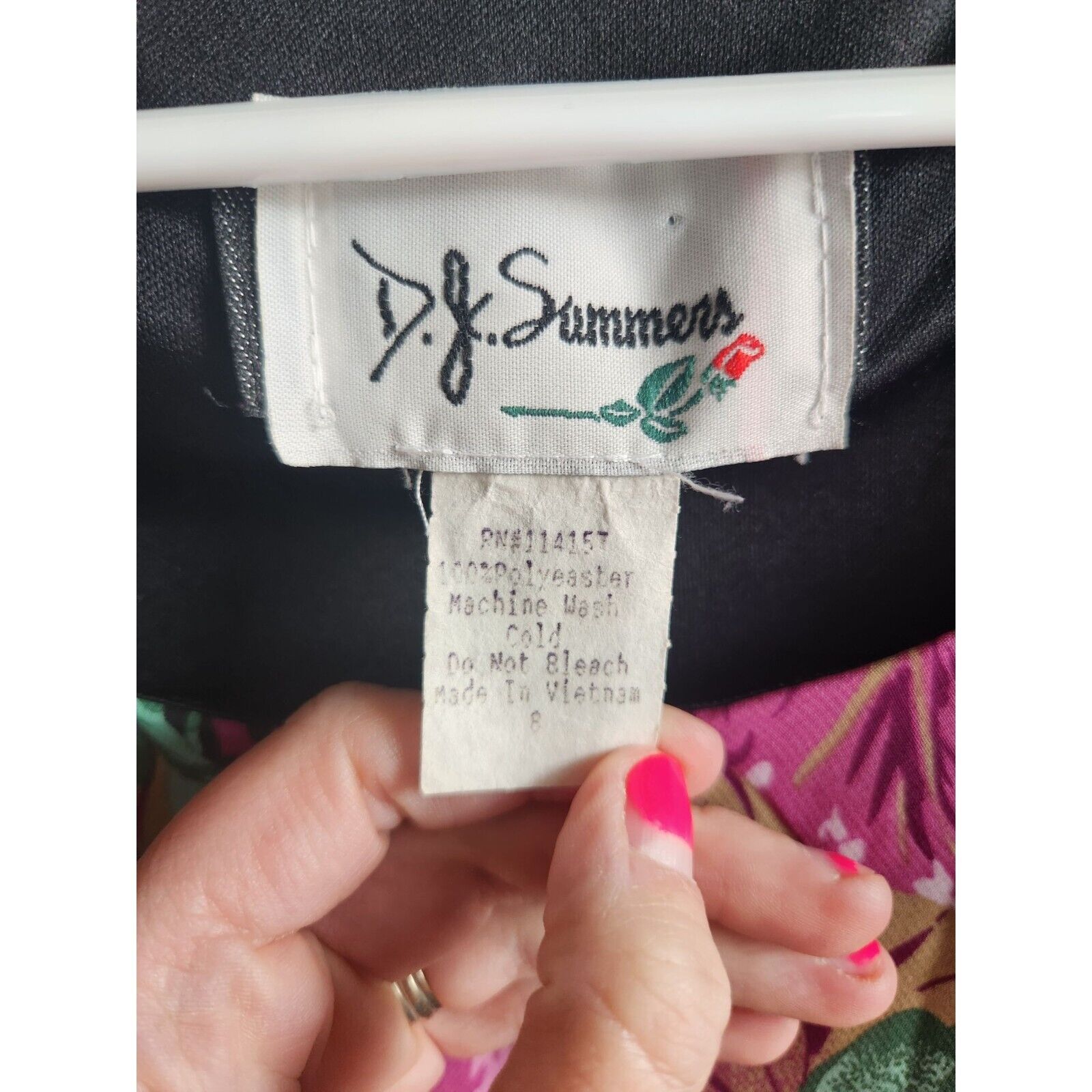 Vintage DJ Summers Womens Sz 8 Midi Length Sleeveless Dress Pink Green Floral