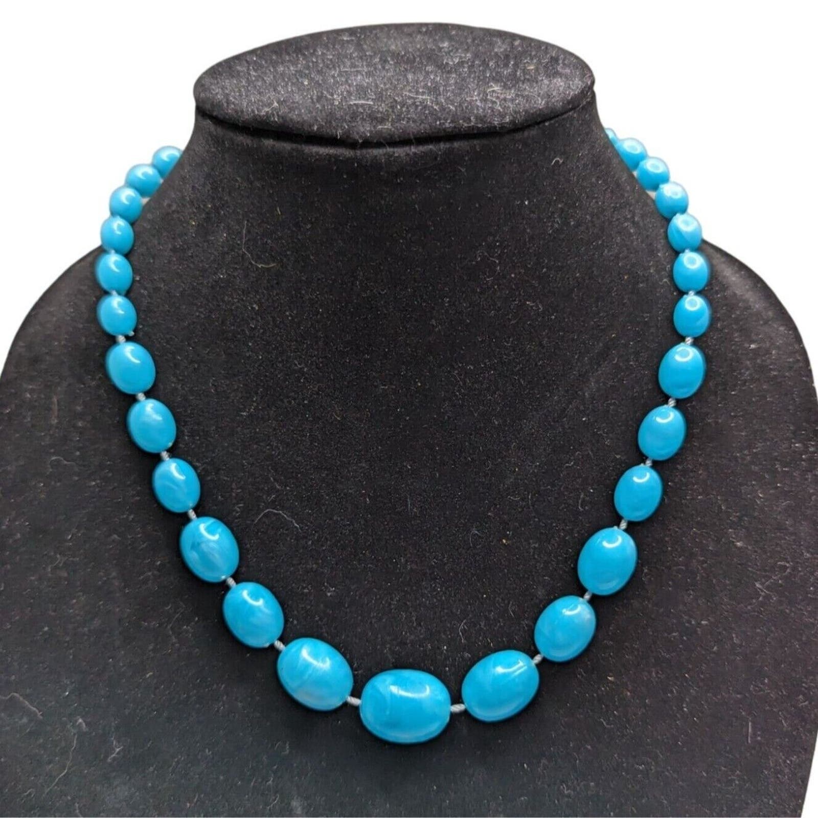 Vintage Graduated Oval Beaded Blue Stone Necklace