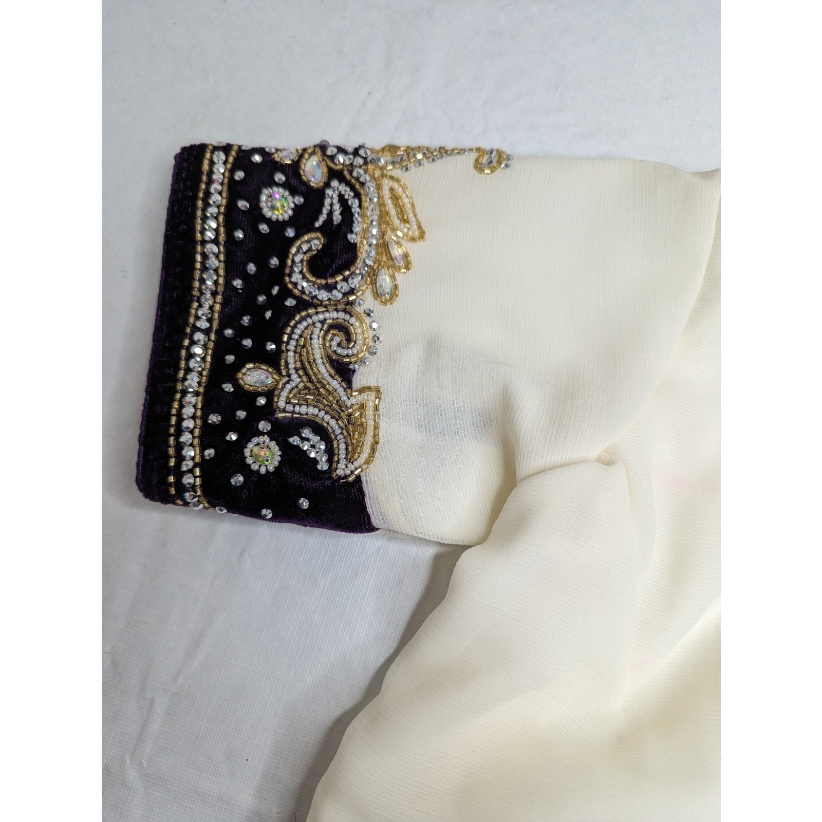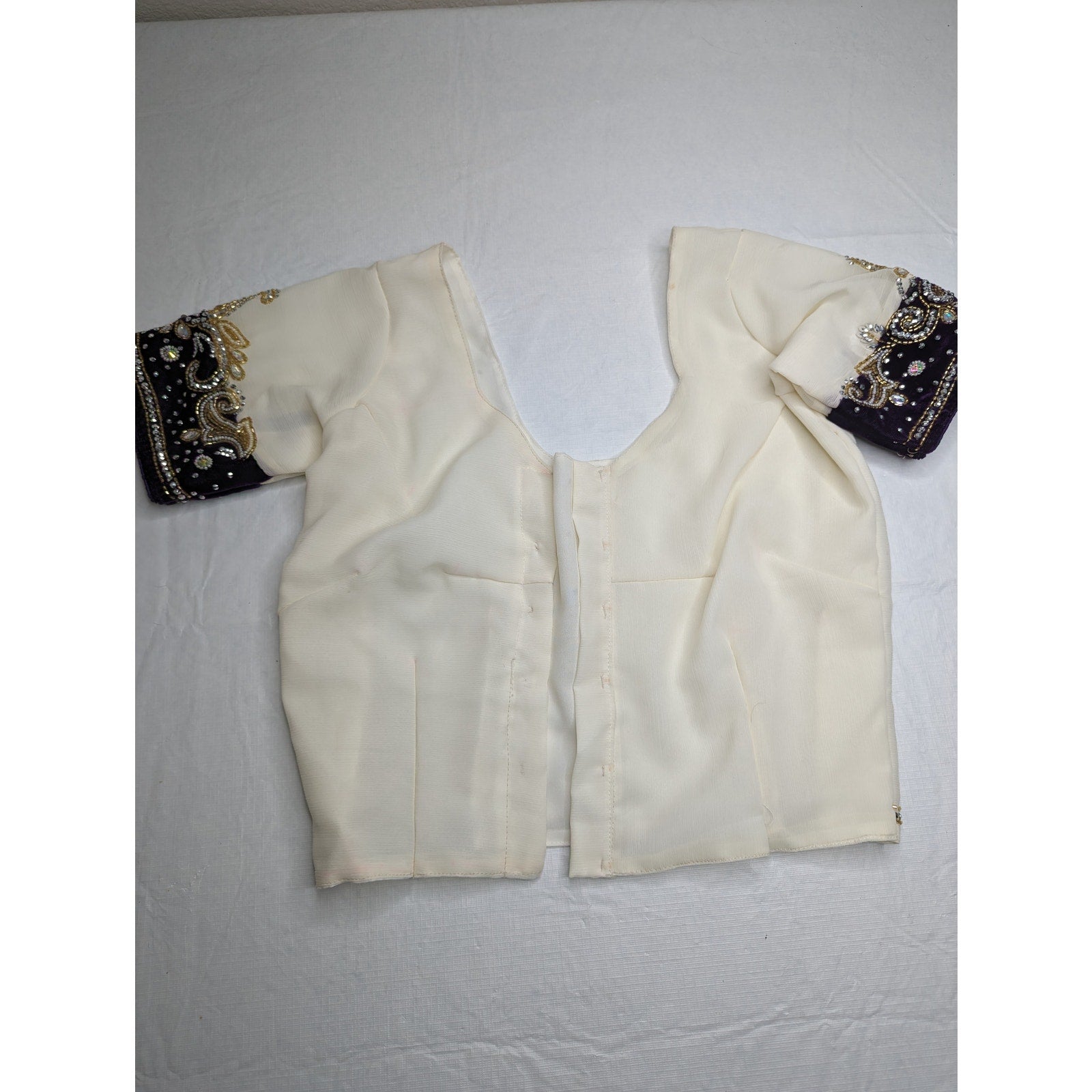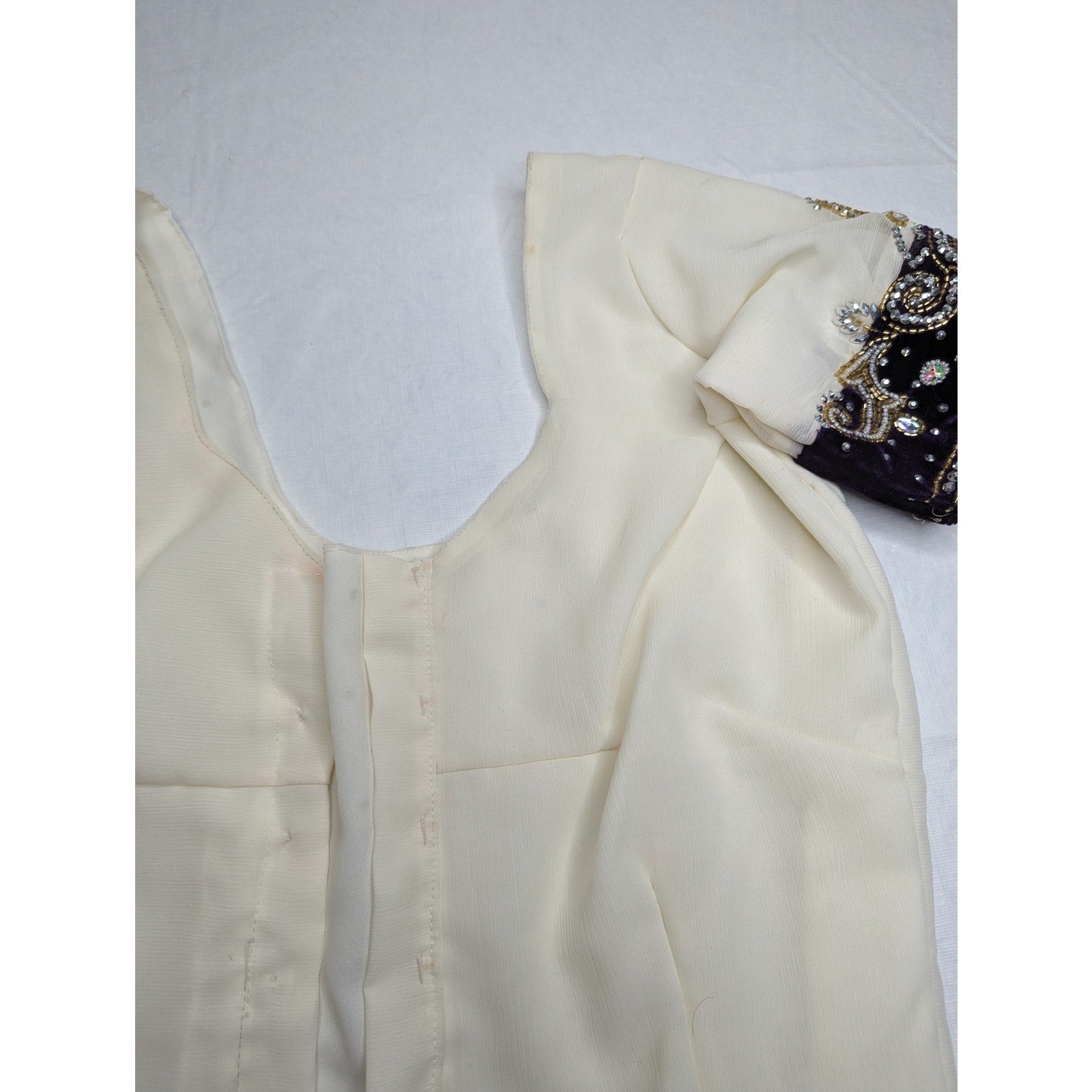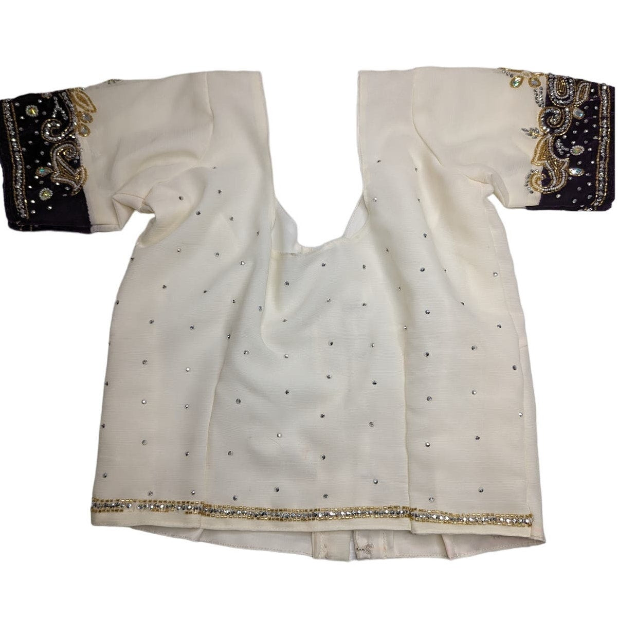 Vintage Handmade in India Womens Sz S Cropped Embroidered Cream Gold Top