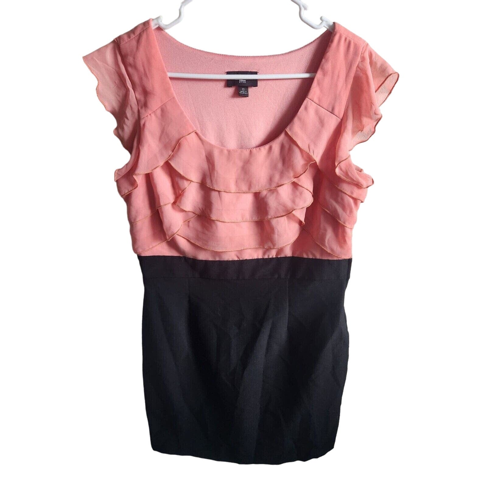 This vintage IZ Byer Juniors knee-length pencil dress in light pink and black is a must-have for any fashionista! The combination of colors and design make it a unique addition to any collection. The dress is perfect for a night out or a special occasion. The sizing is a junior's size 13.