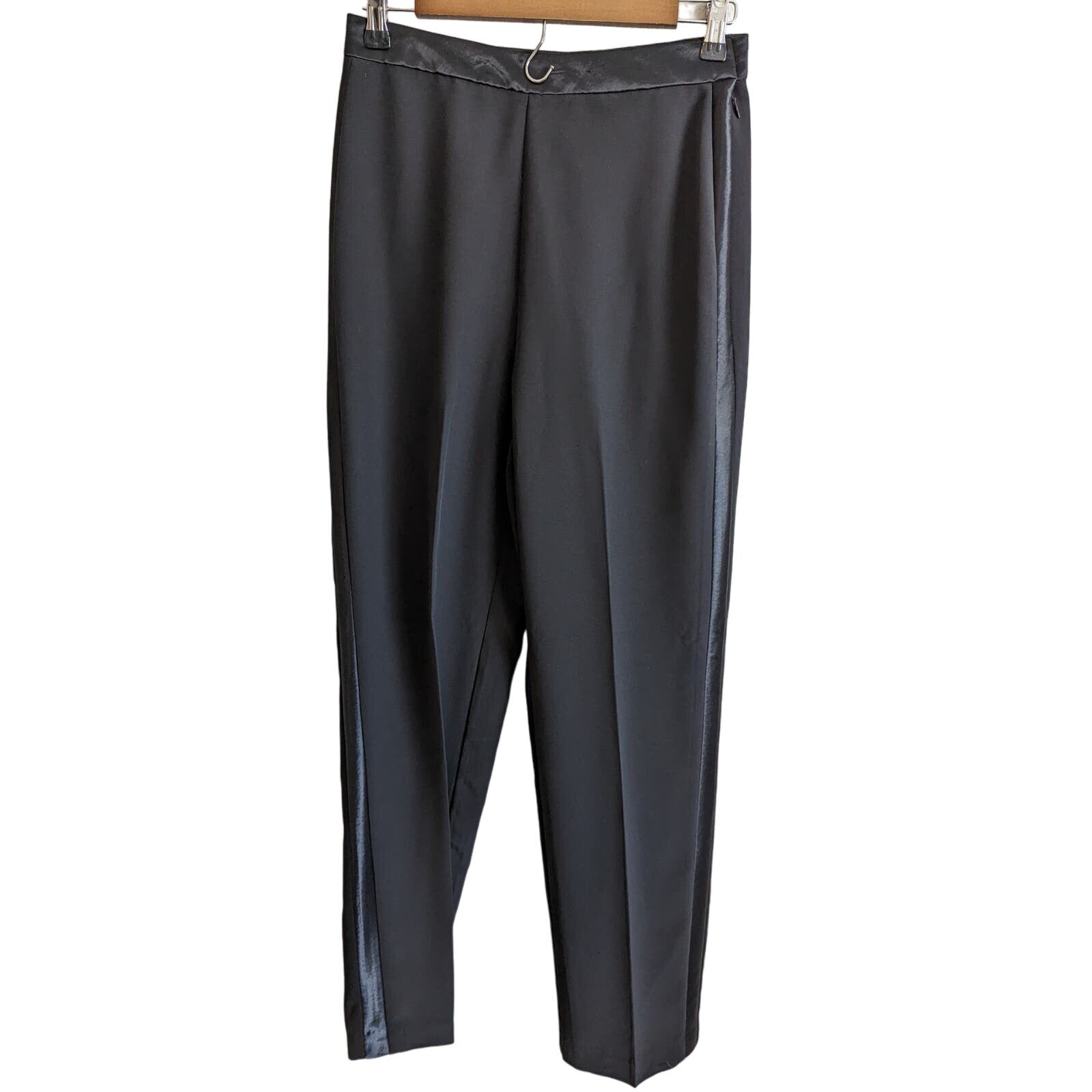Vintage J Ribkoff Couture Sz 8 Straight Leg Black Career Pants Satin Stripe