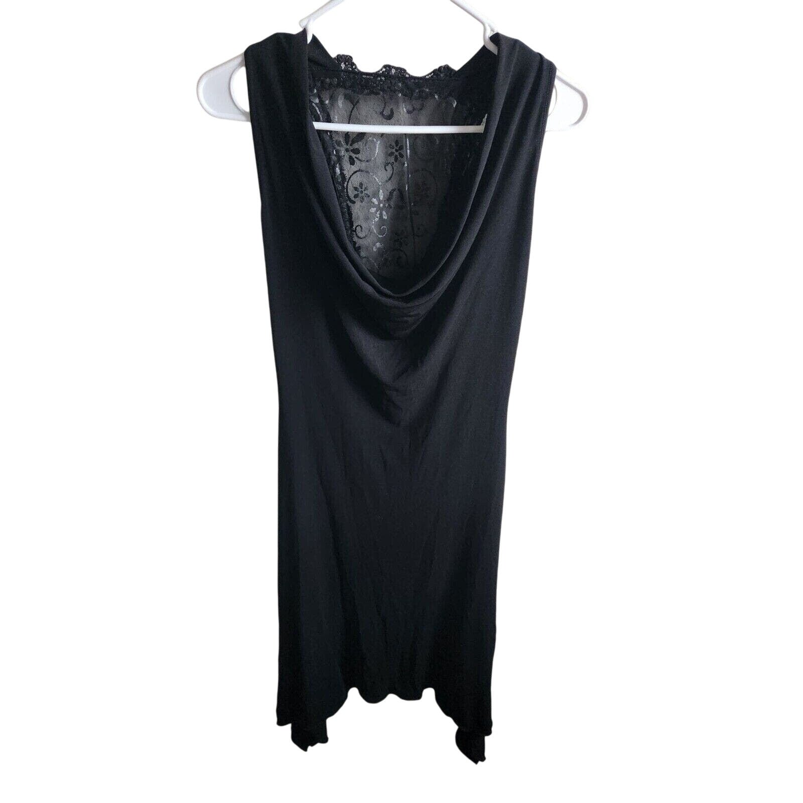 Vintage Janine Paris Womens Sz S Midi Formal Black satin Dress Lace Back