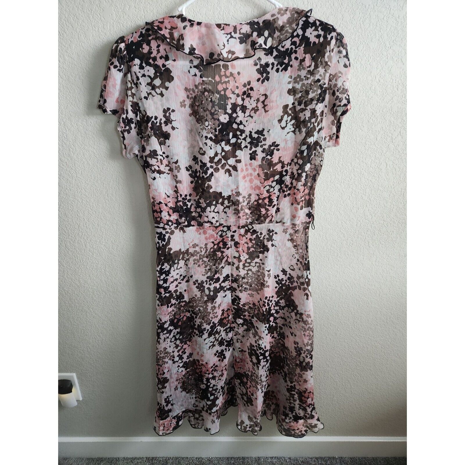 Vintage JBS Womens Sz 12 Midi Length Dress Brown Pink Abstract Dots