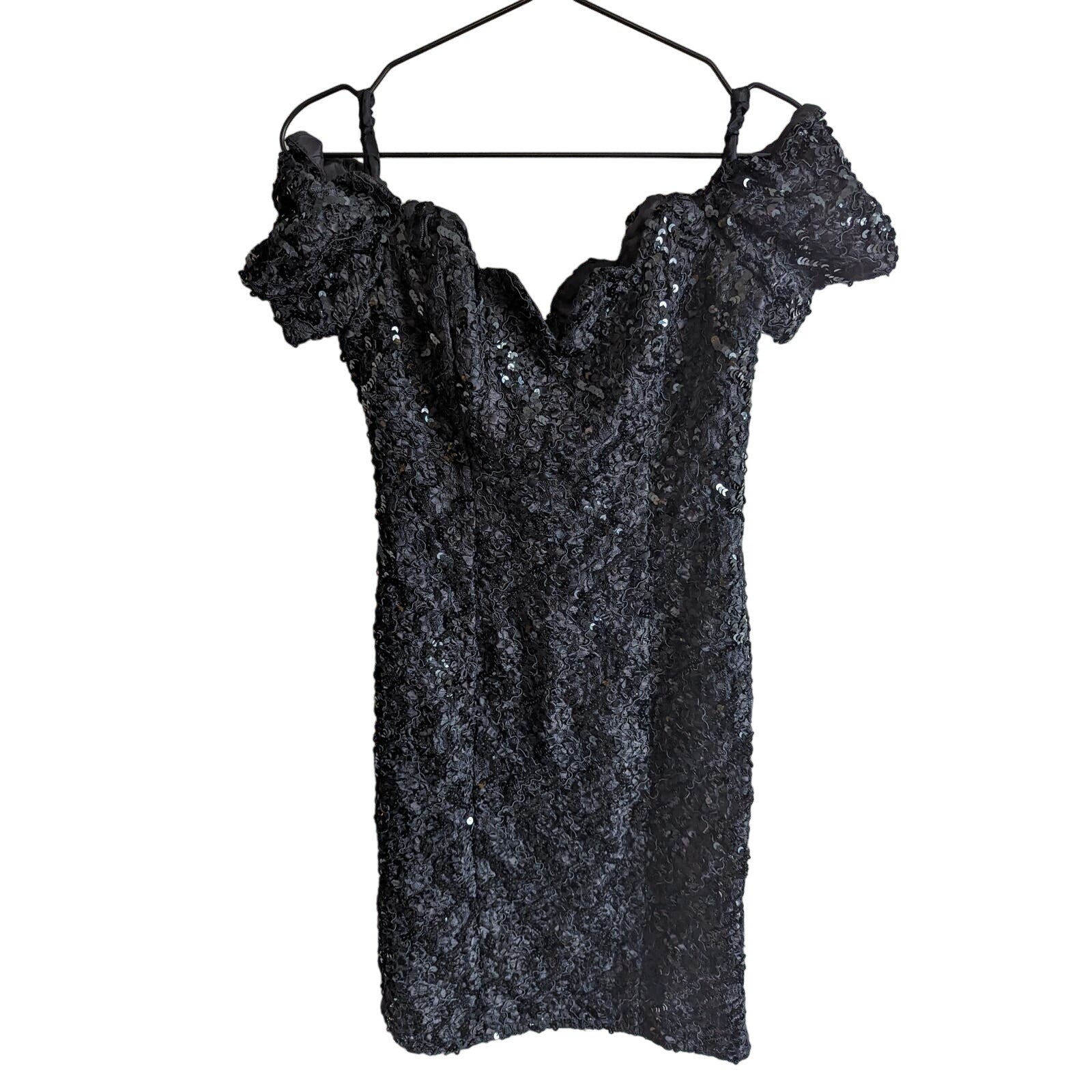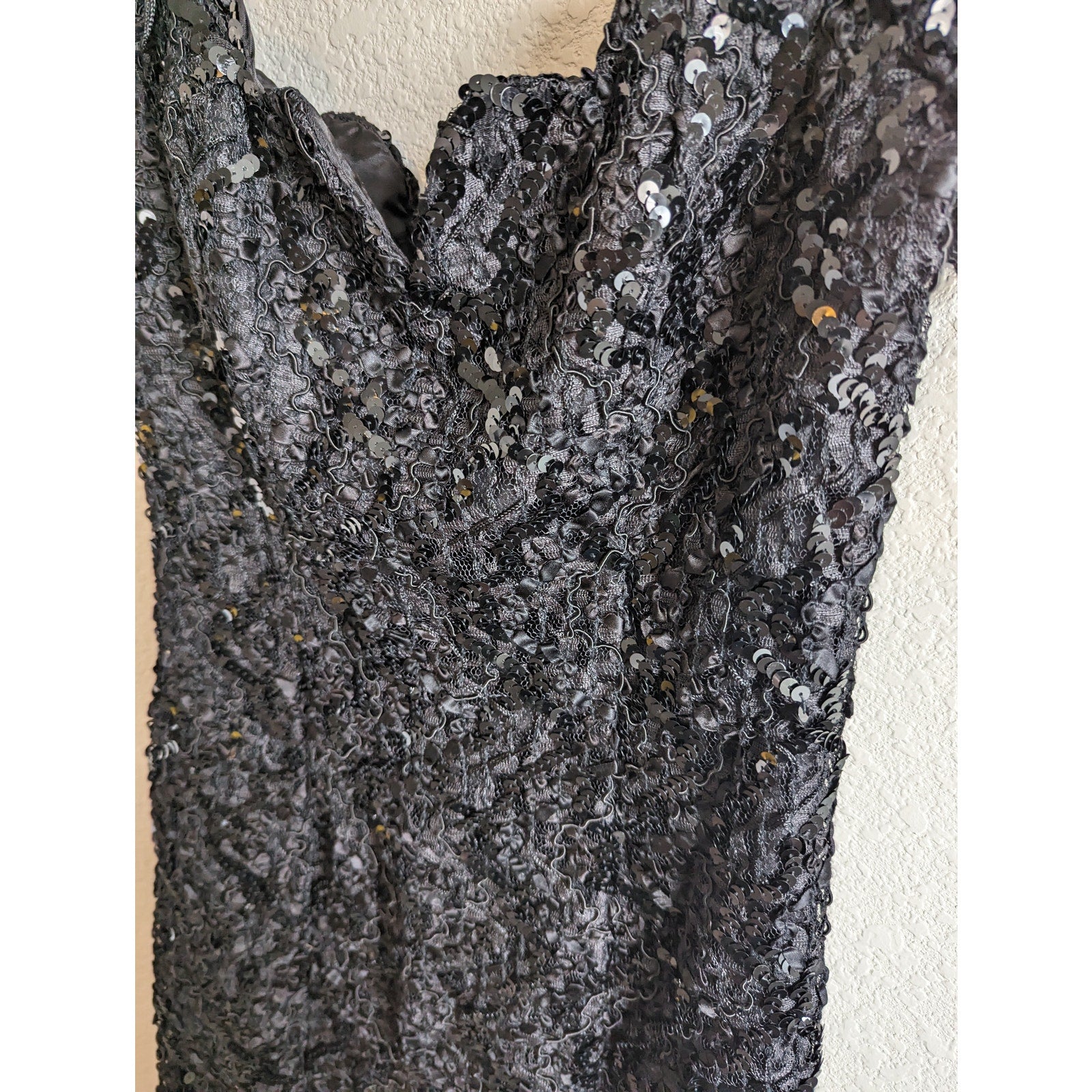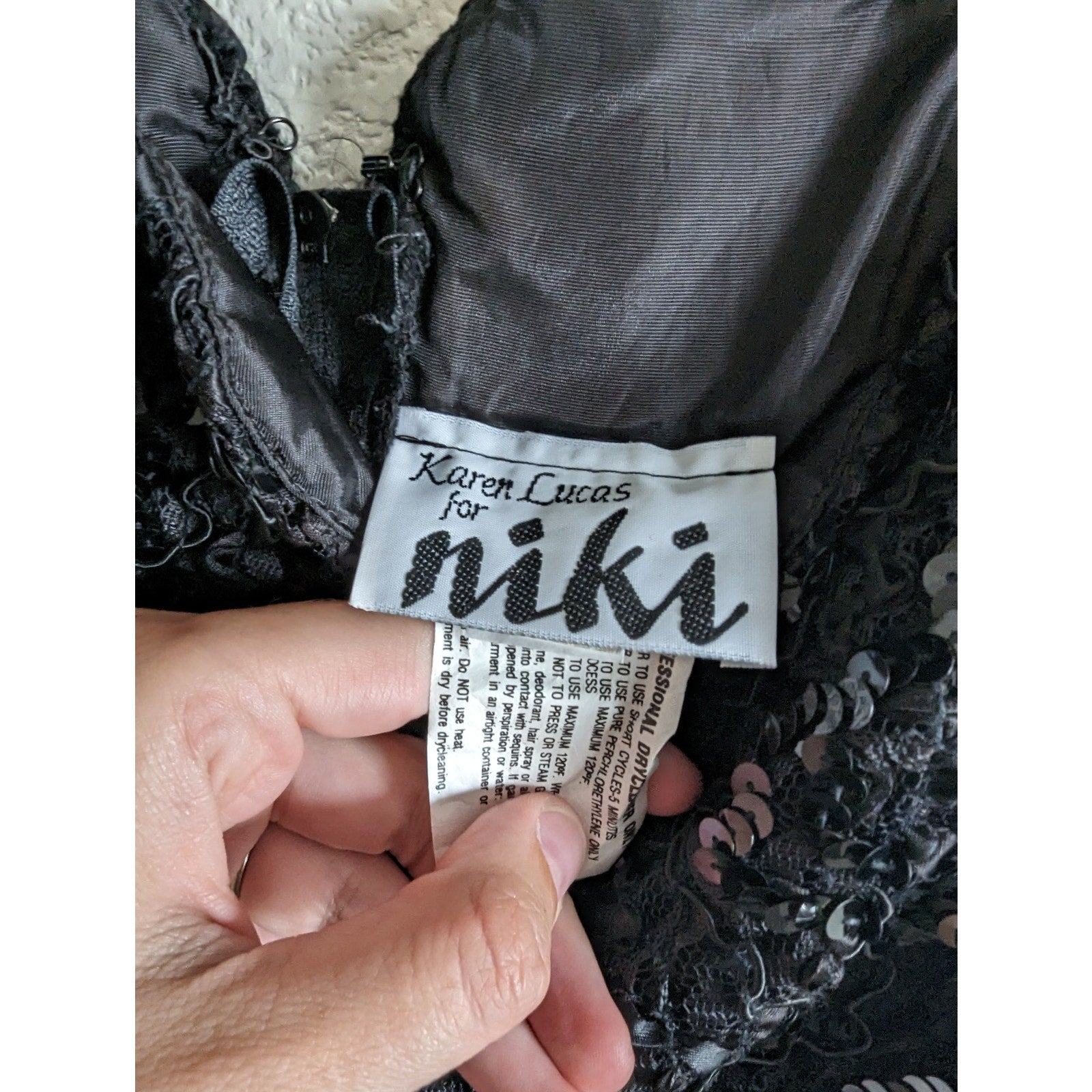 Vintage Karen Lucas Niki Sz 8 Knee Length Black Sequin Formal Prom Dress