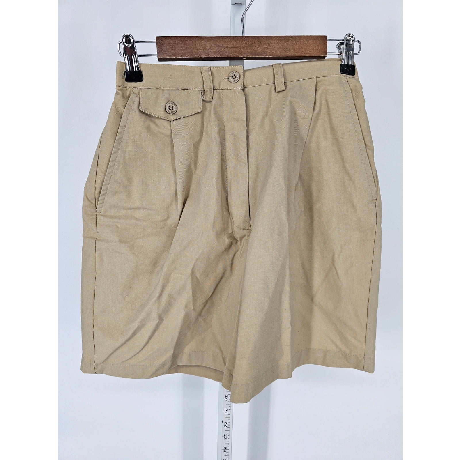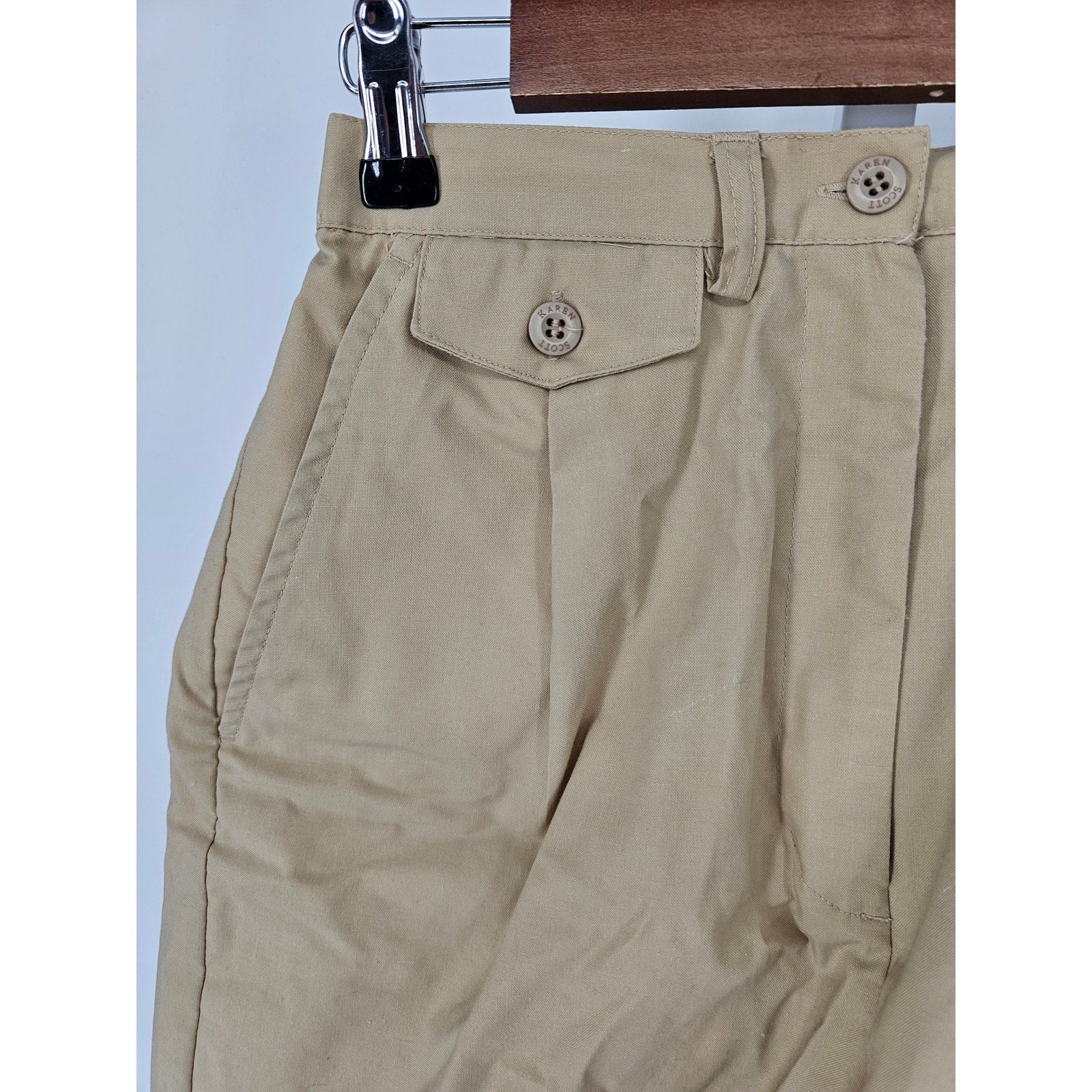 Step back into the 90s with these stylish vintage Karen Scott khaki shorts. With a high waist and pleated design, they're the perfect addition to any wardrobe. Designed for women's size 8, they're comfortable and versatile, suitable for both casual and formal occasions. The quality speaks for itself, and they're sure to last for years to come. Don't miss out on the chance to add a touch of vintage elegance to your wardrobe.
