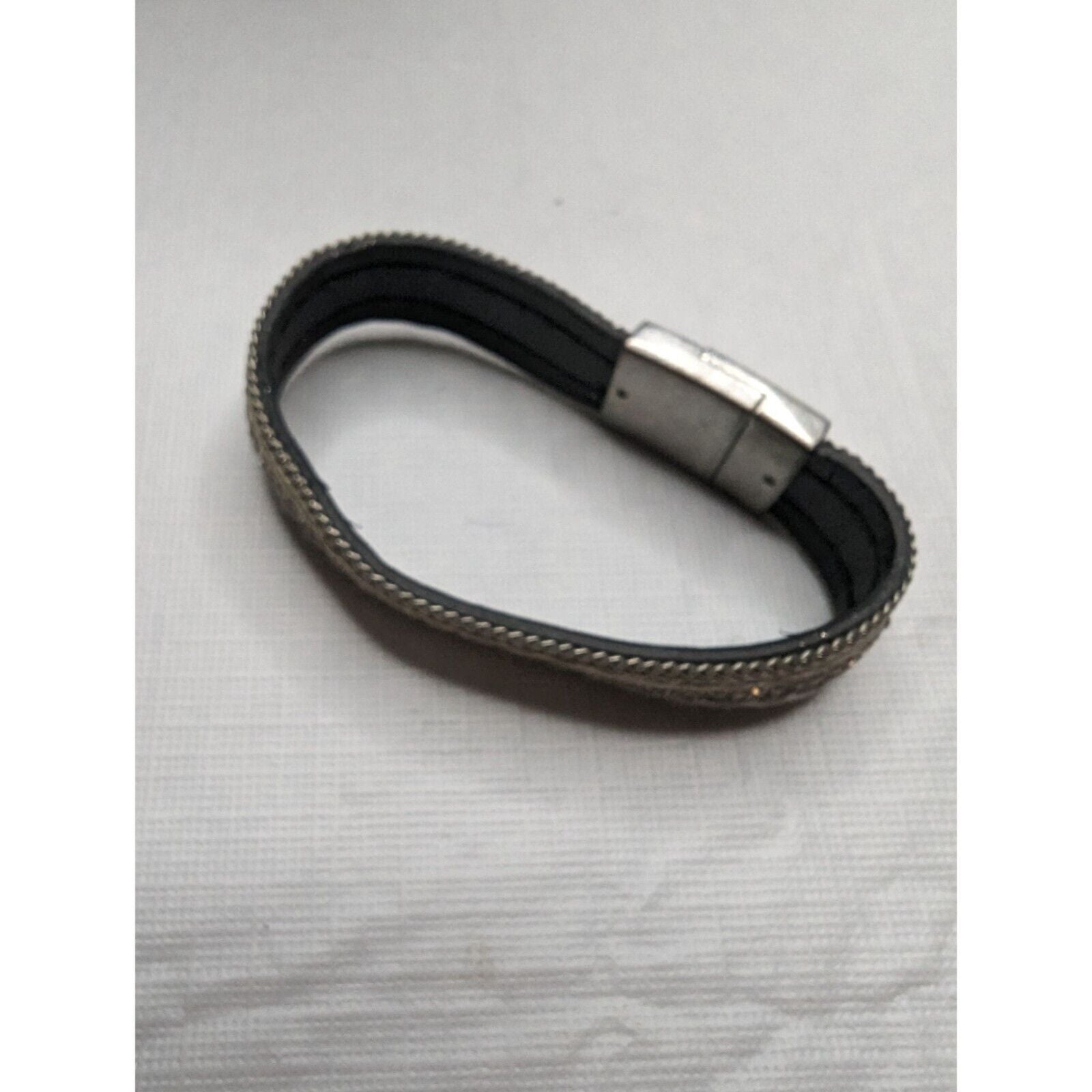 Vintage Leather and Rhinestone Bangle Cuff Bracelet Magnetic Closure Boho