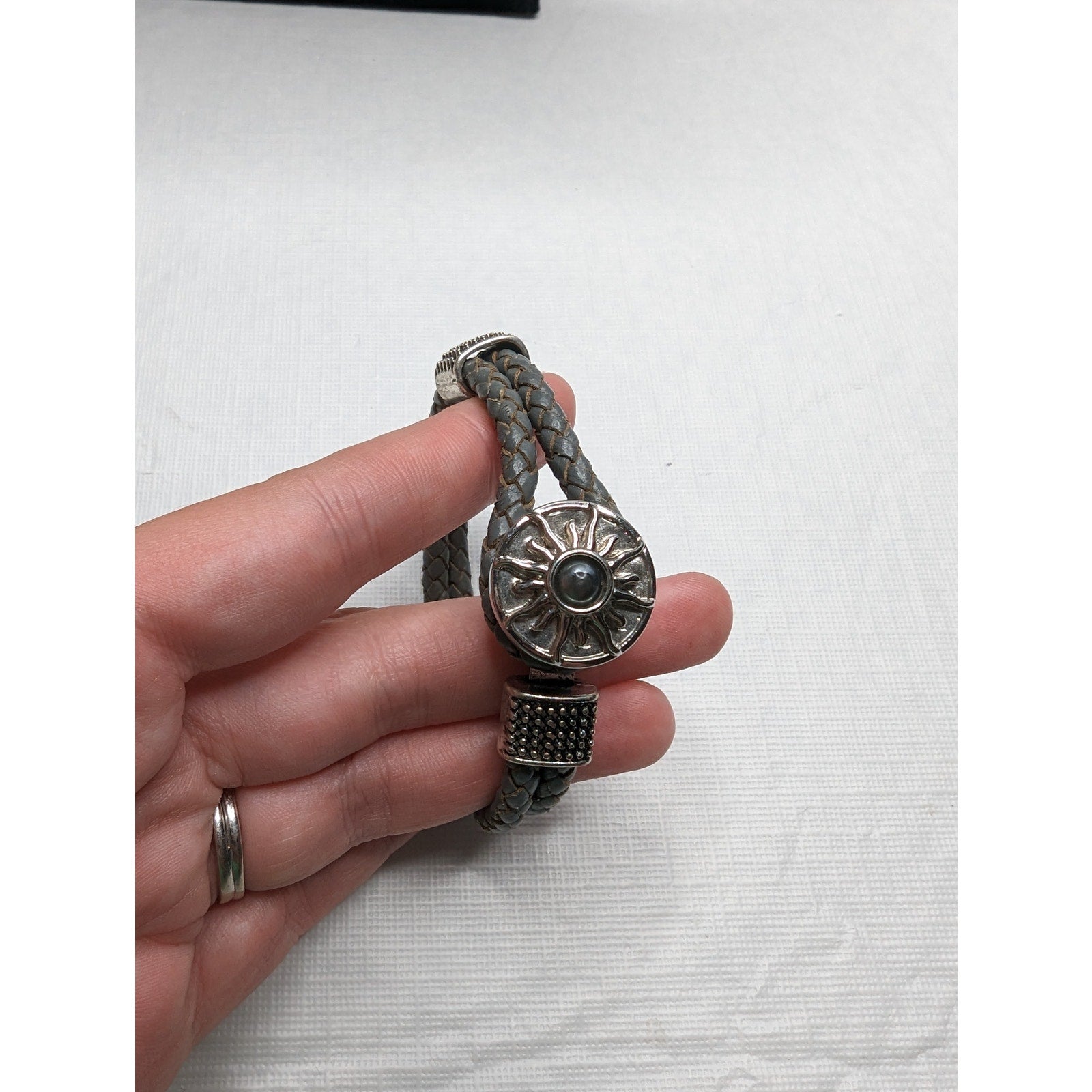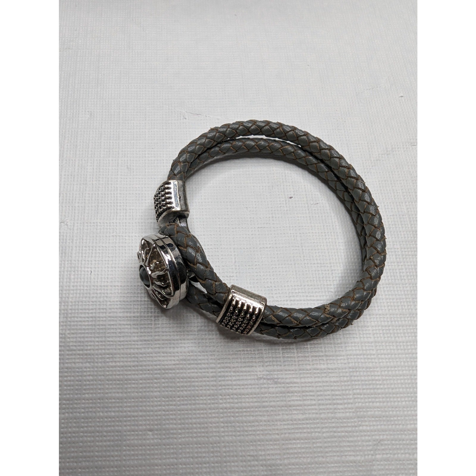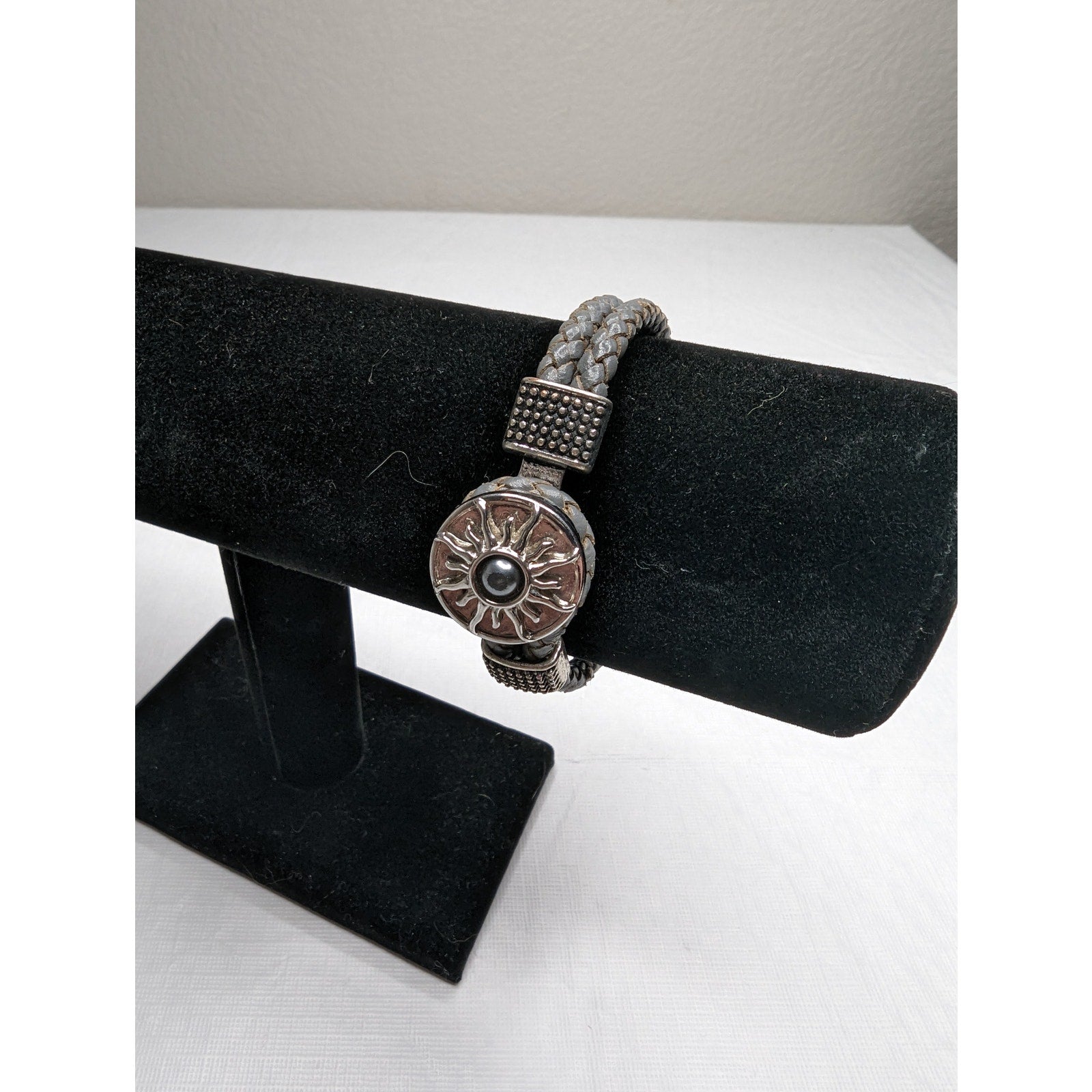 Vintage Leather Braided Rope Southwestern Bracelet Silver Stone