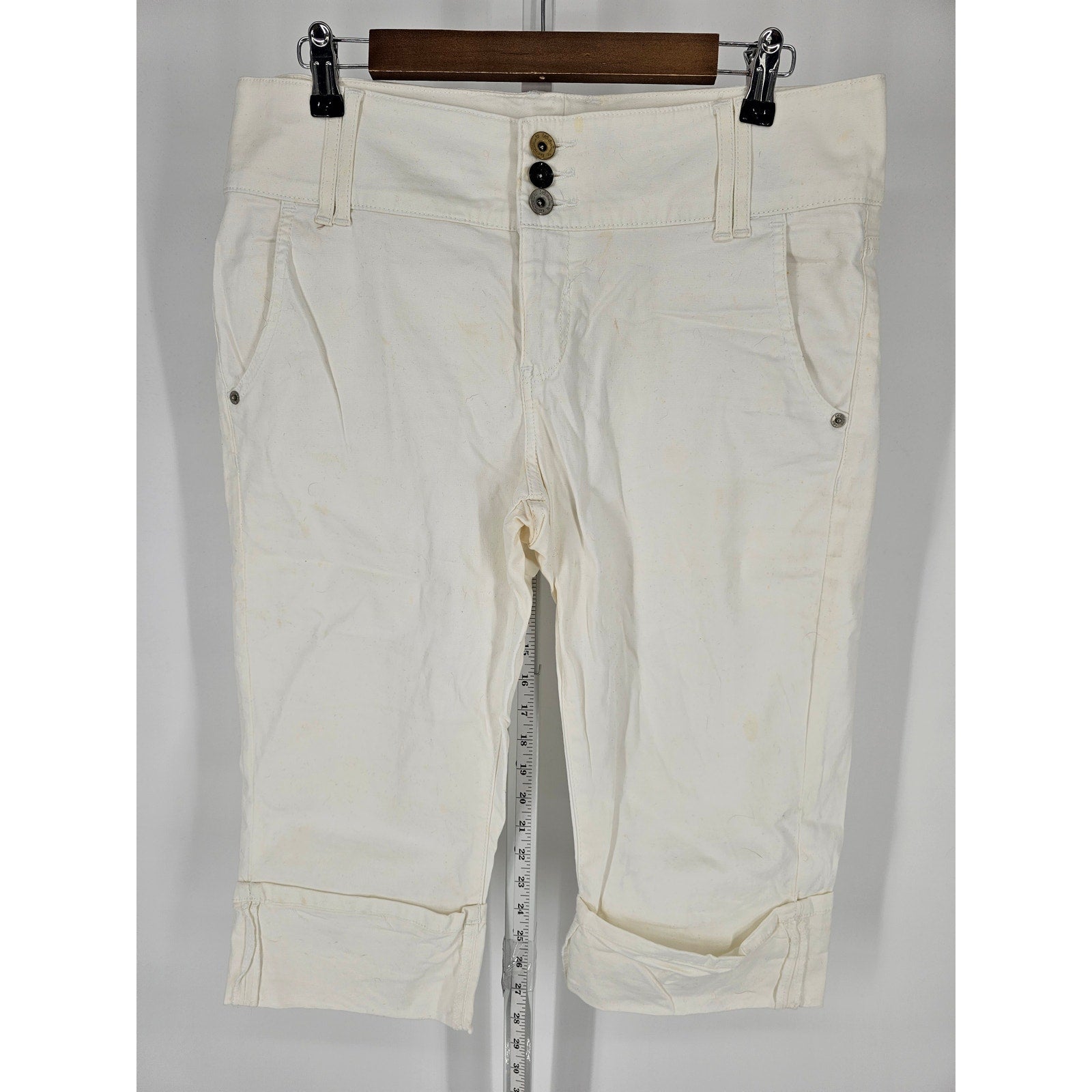 Vintage Lee Womens Sz 12 Cropped Denim Capris White Roll Tab Hem