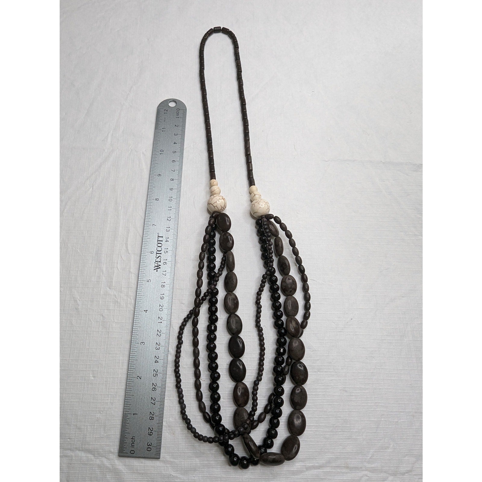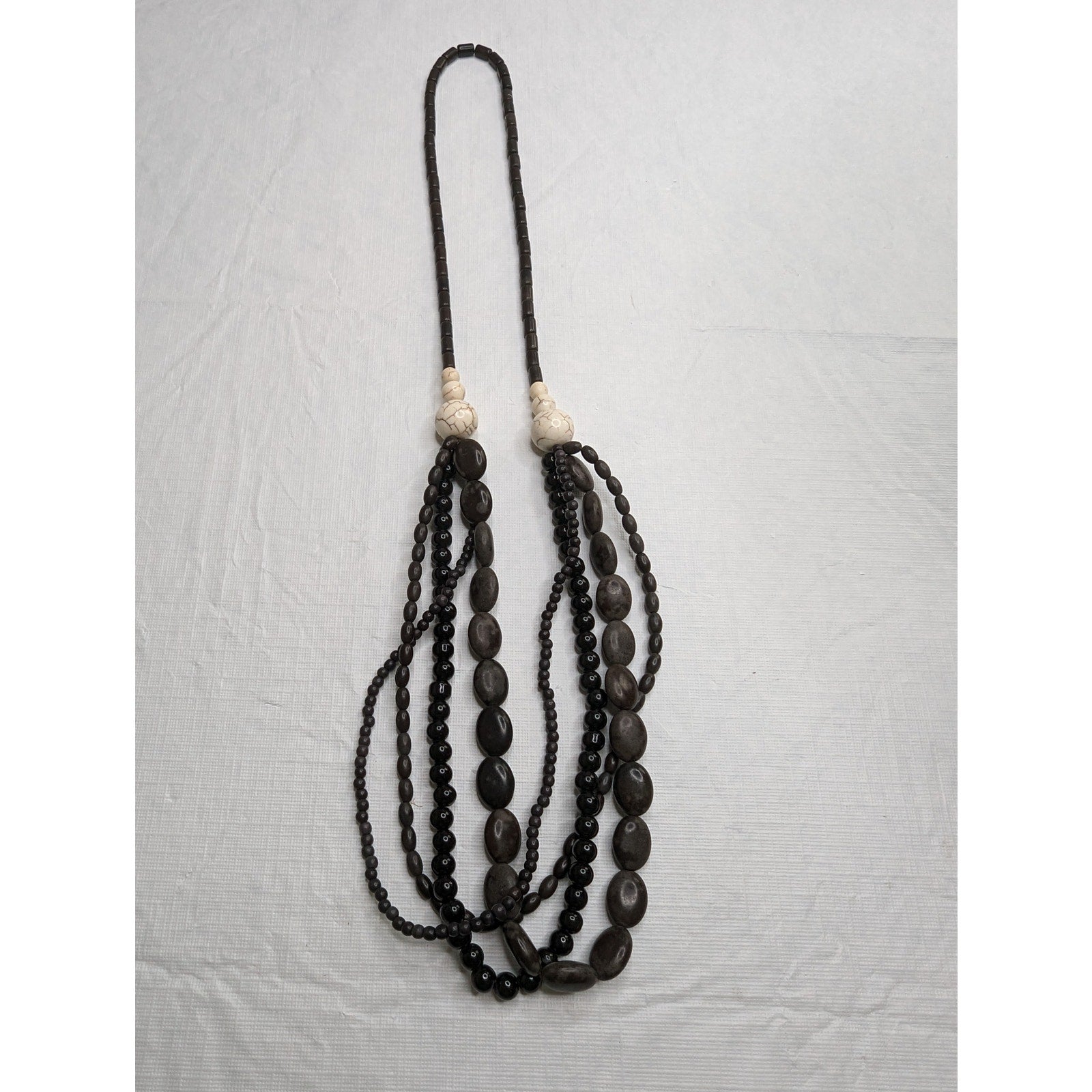 Vintage Long Multi Strand Beaded Necklace Gray Tone Beads