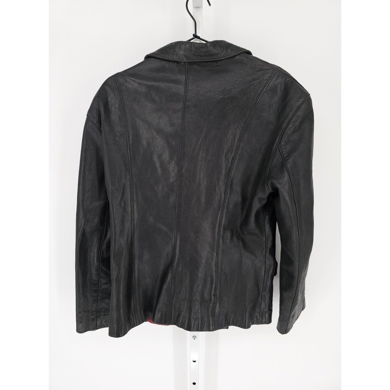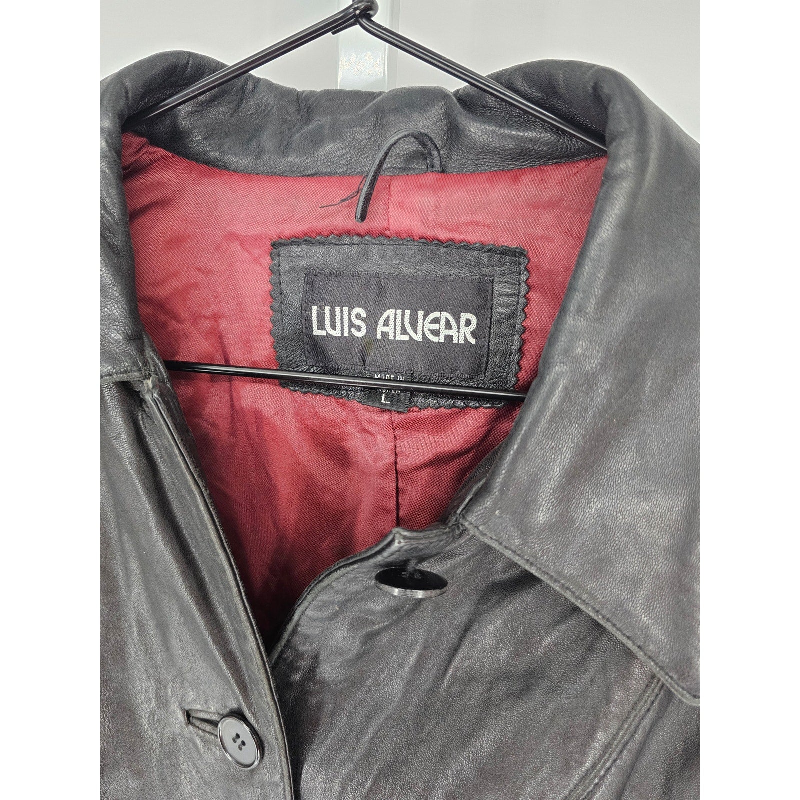 Vintage Louis Alvear Womens Sz L Button Up Black Leather Jacket