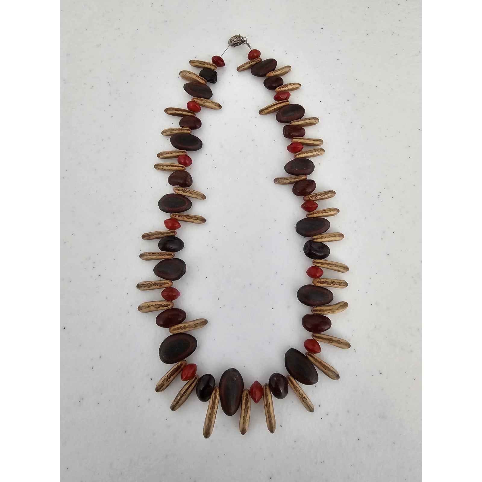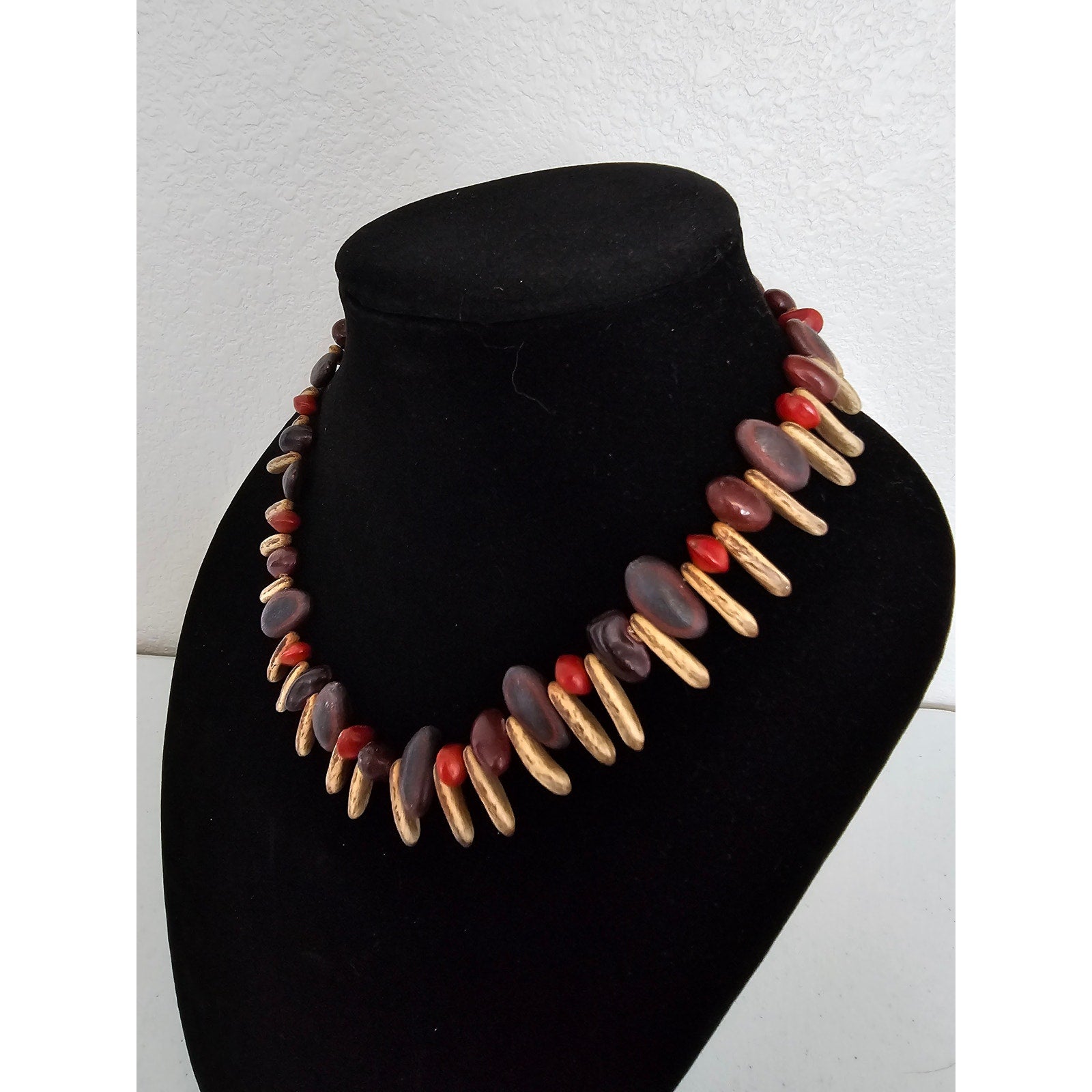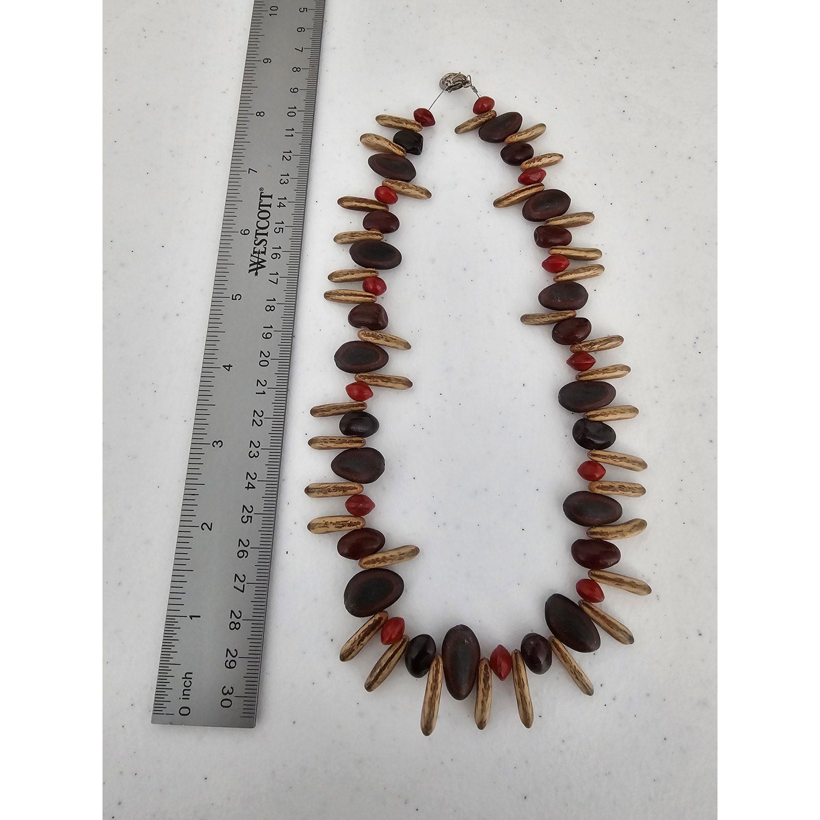 Vintage Mid Century 1960s Womens Single Strand Wooden Beaded Necklace Red Brown