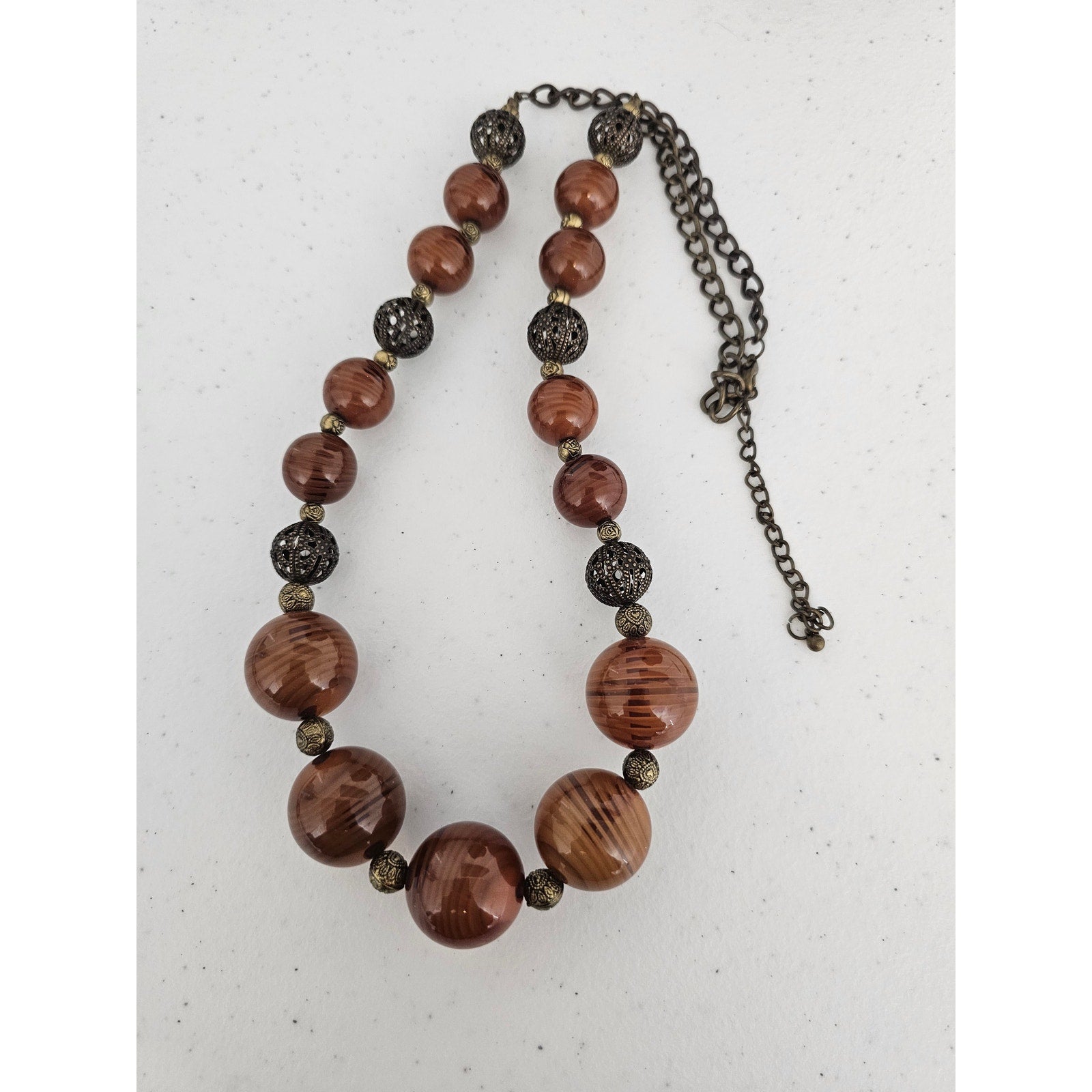 Vintage Mid Century Chunky Graduated Beaded Necklace Brown Single Strand