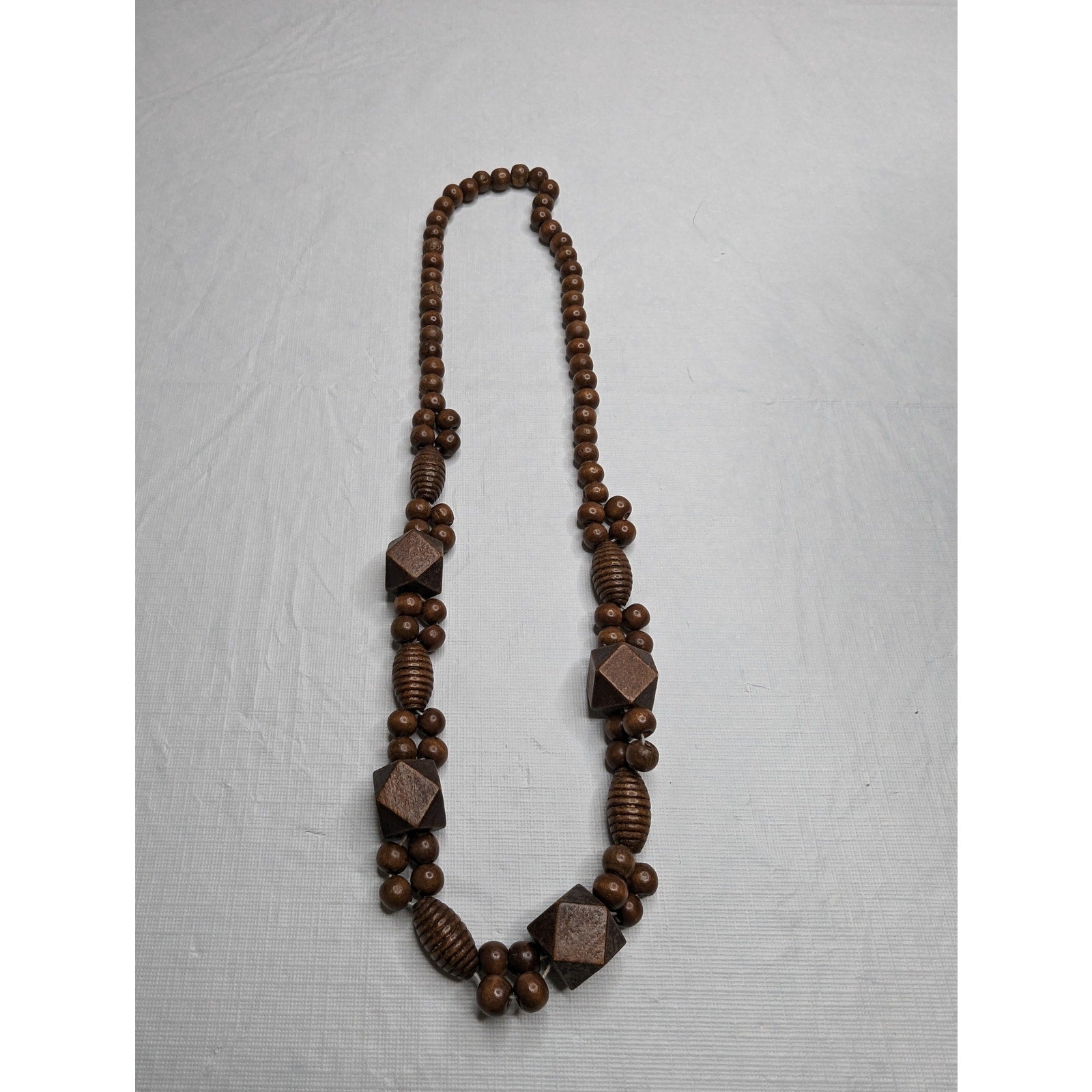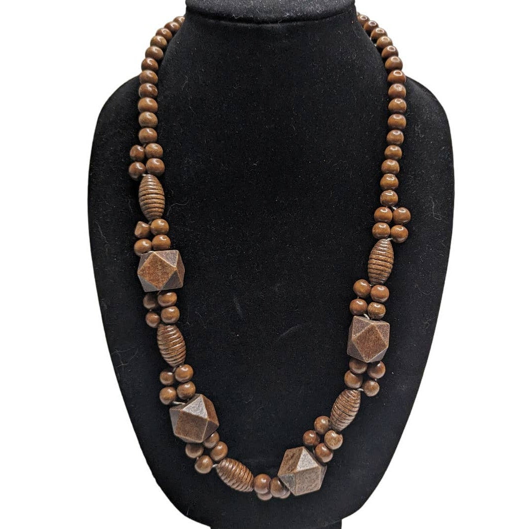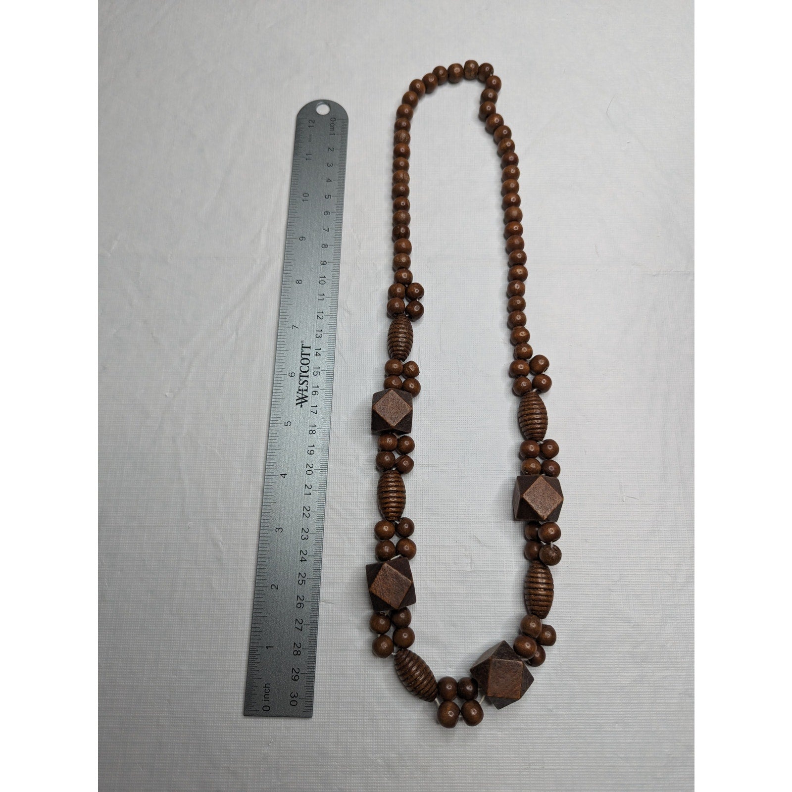 Vintage Mid Century Chunky Wooden Beaded Statement Necklace Brown